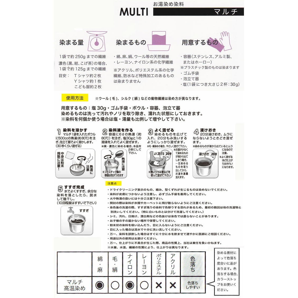 ※濃色(黒、紺、茶)は染料を2倍にして下さい。