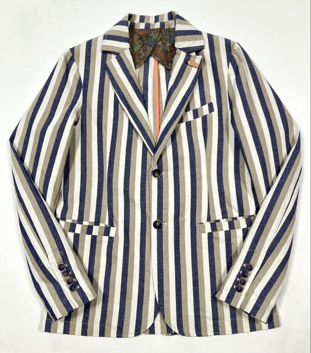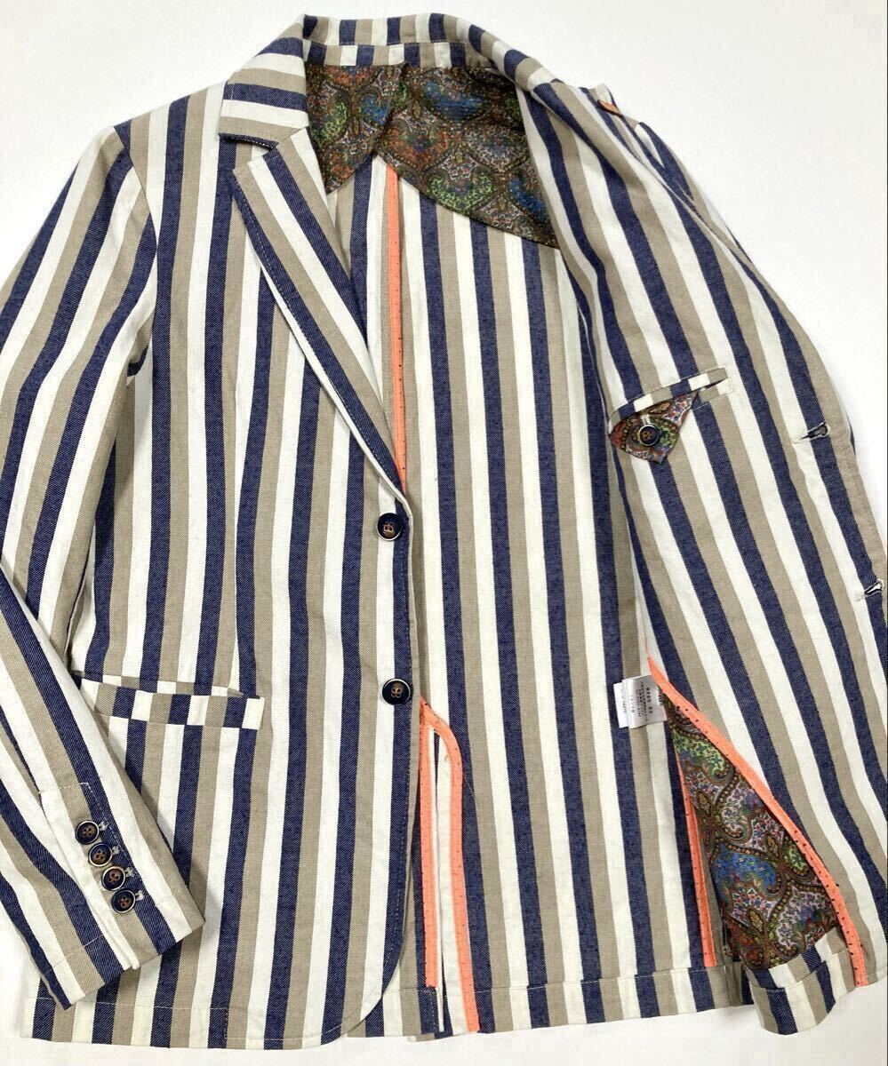 今回出品致しましたのは、“ALEXA-AR8”、トリコロールトライプの生地を使用した、2Bのコットンジャケットになります。