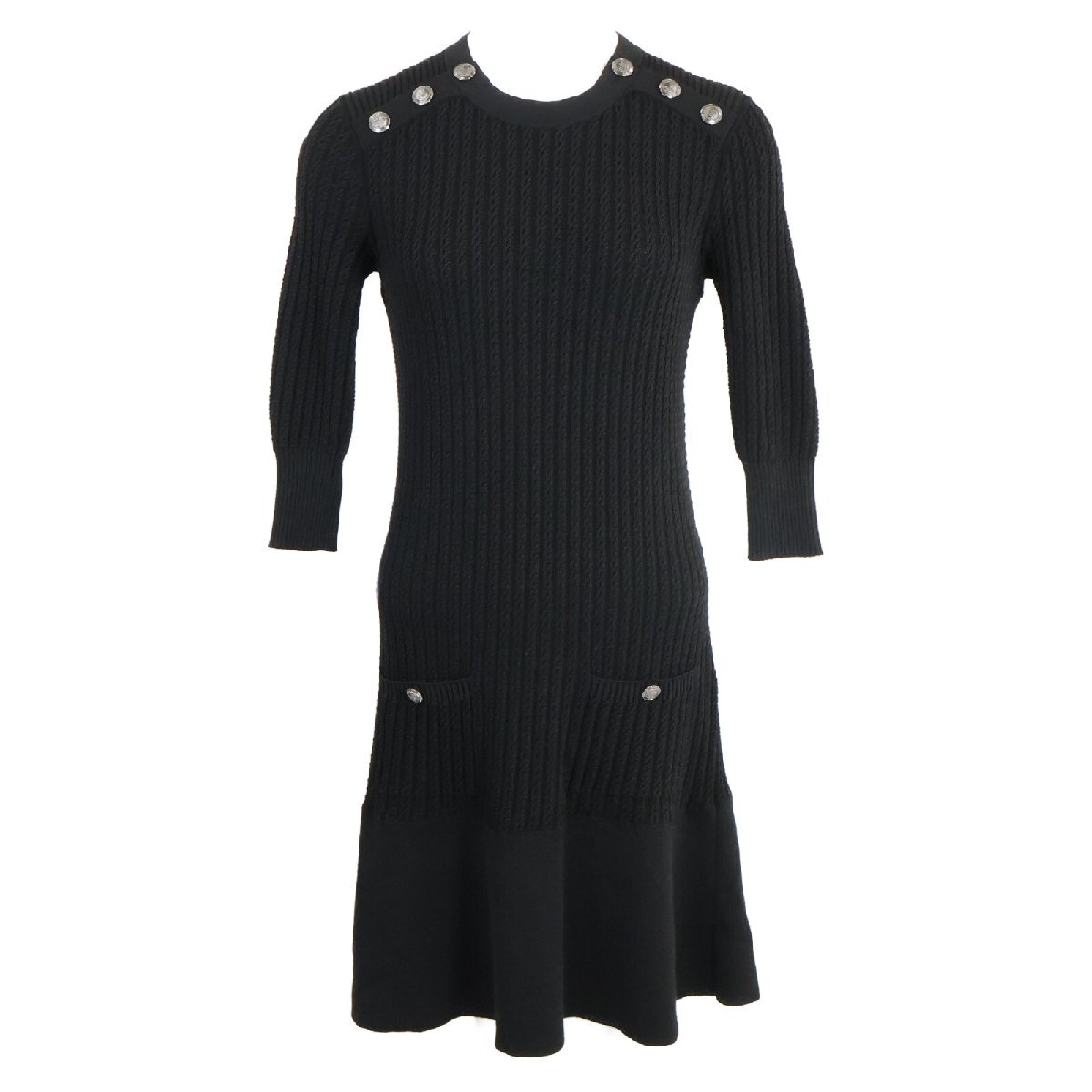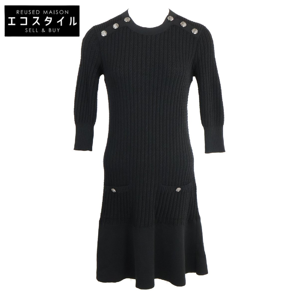 美品/国内正規 CHANEL シャネル P59258K07778 5部袖 ニット ワンピース 34 ブラック レディース