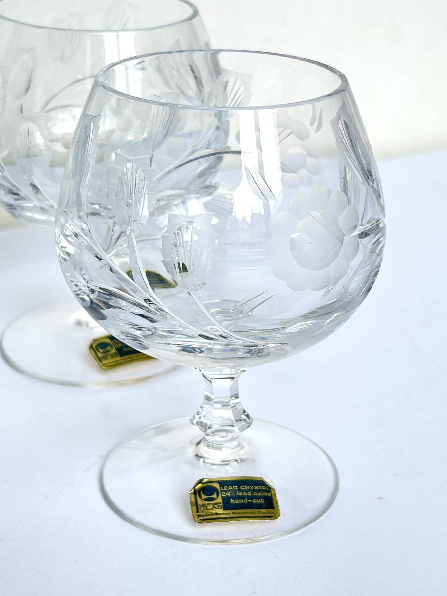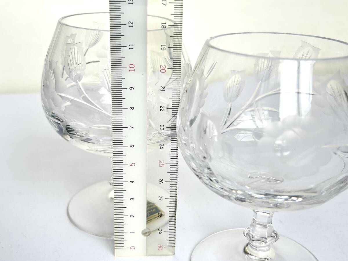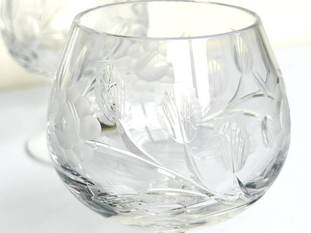 ブランデーグラス C ☆ 2セット 花柄・クリスタルグラス ◎ 4客