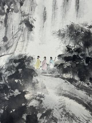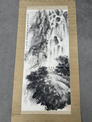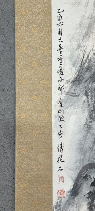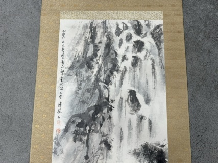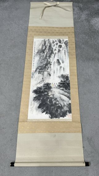 『三希堂』 中国画 古美術 [傅抱石山水図] 掛け軸 真筆逸品 肉筆保証 中心尺寸83X36cm ABC650