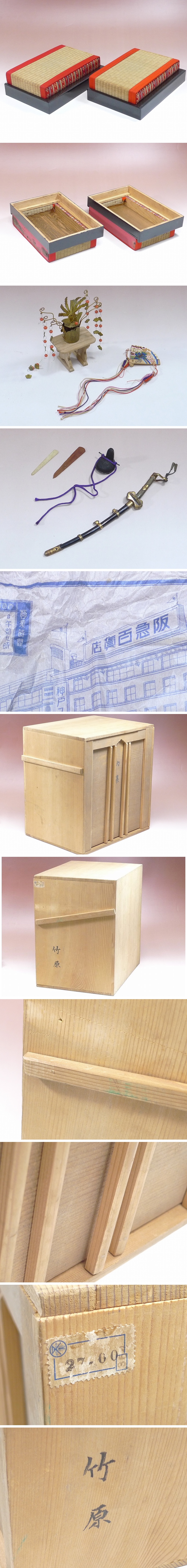 古い雛人形 内裏雛・桐箱 小道具付き・御雛様お内裏様男雛女雛・桃の節句ひな祭り・時代雛・日本人形・アンティーク・昭和初期?・大阪阪急百貨店