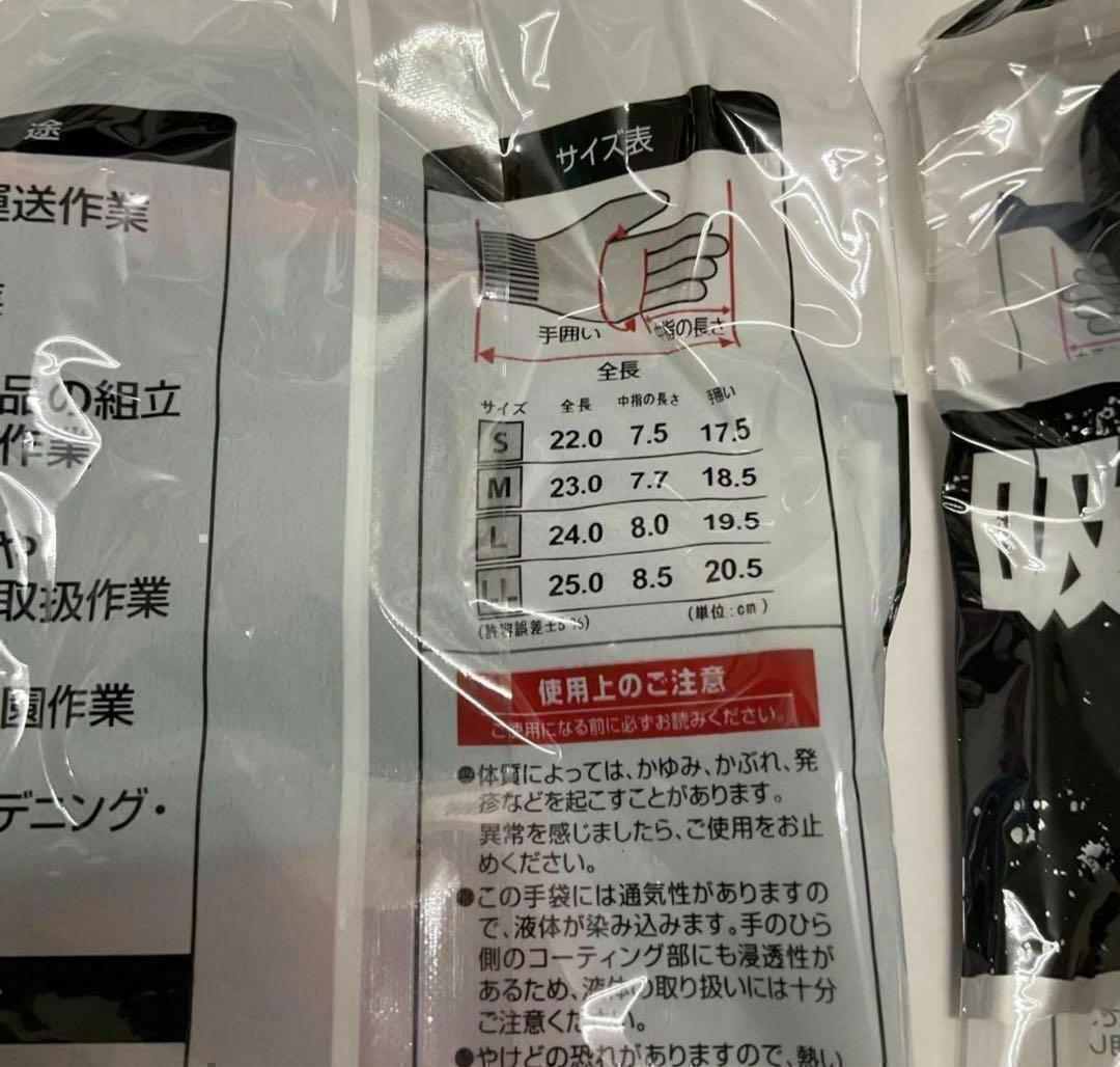 ●M・・・全長:23.0 中指の長さ:7.7 手囲い:18.5