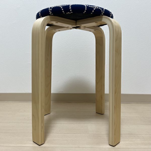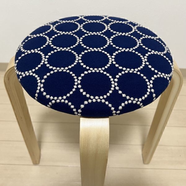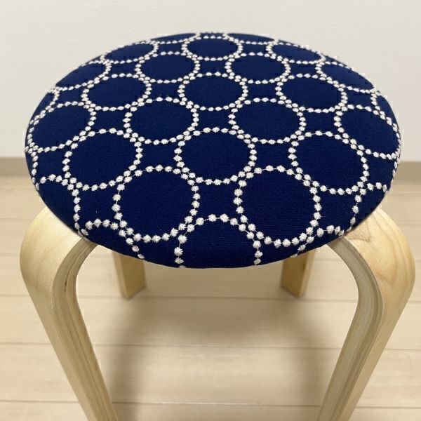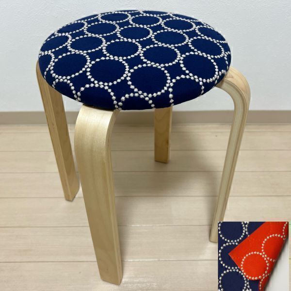 こちらのスツールは、ミナペルホネンのdopのネイビー/オレンジを使用し、スツールの座面を張替えたハンドメイドの物になります。新品ではございますが、初期の小キズがある場合がございます。