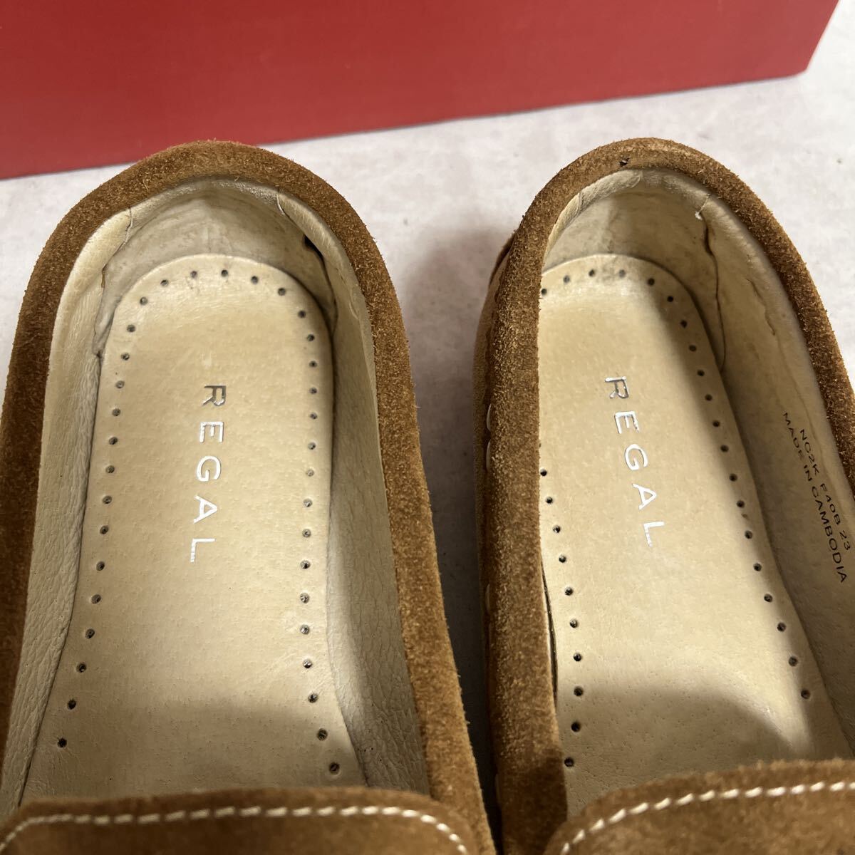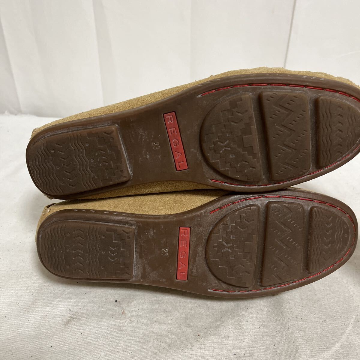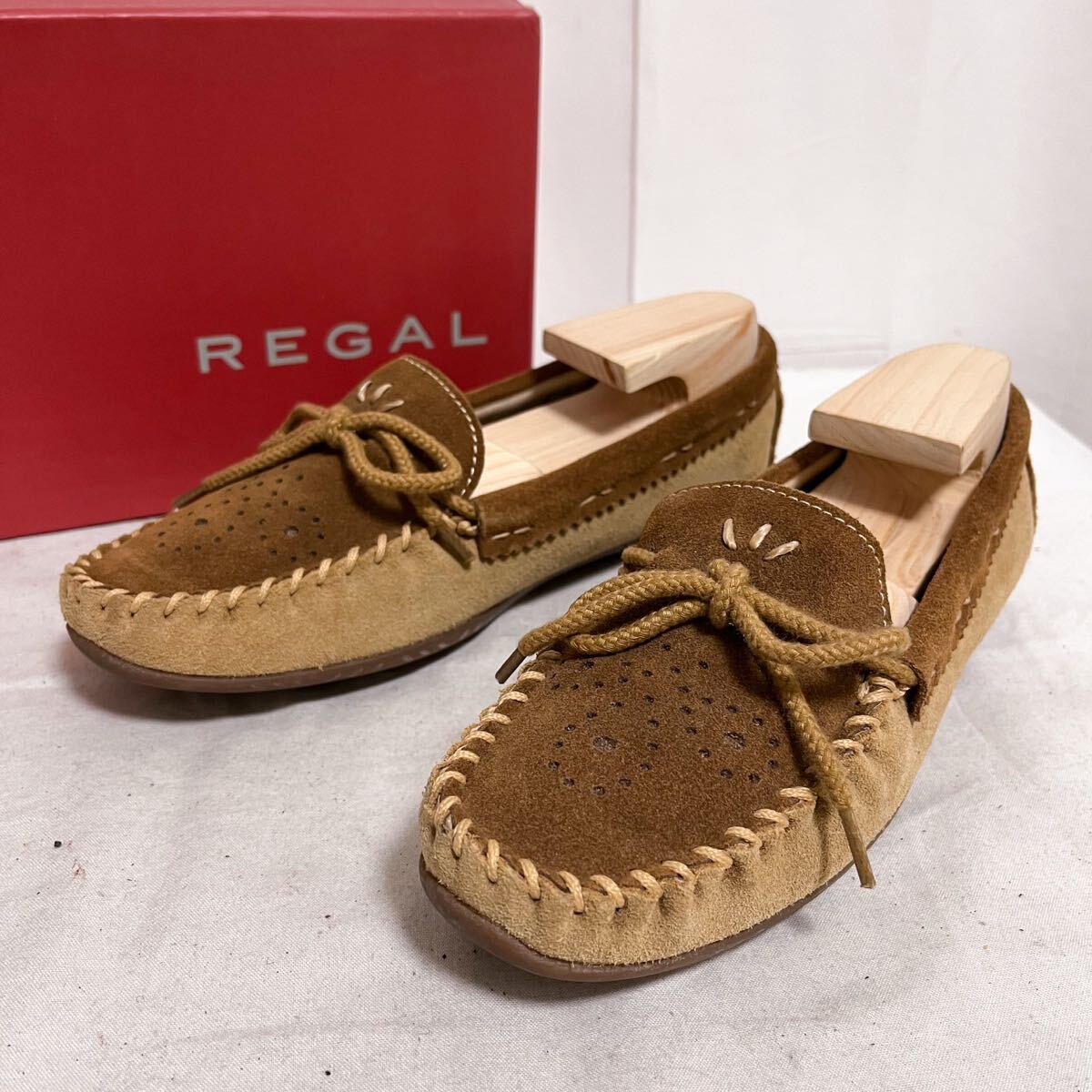 和814★ 美品 箱付き REGAL リーガル モカシン メダリオン シューズ スエードレザー 23 ベージュ ブラウン レディース