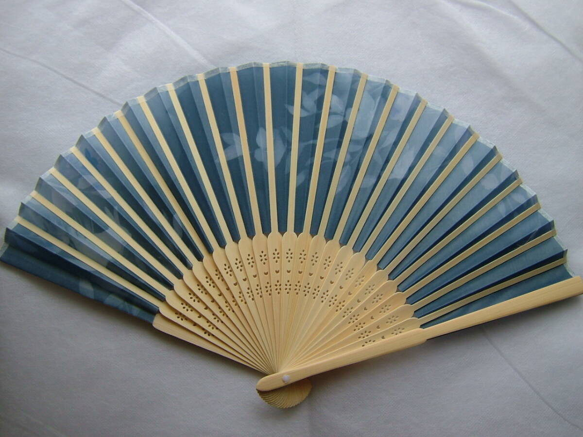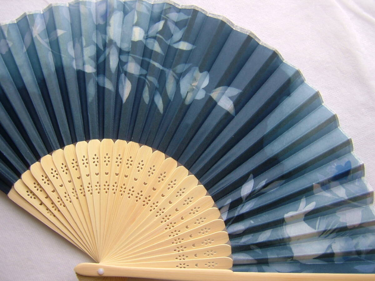 扇子 花ウサギ 紺 21cm