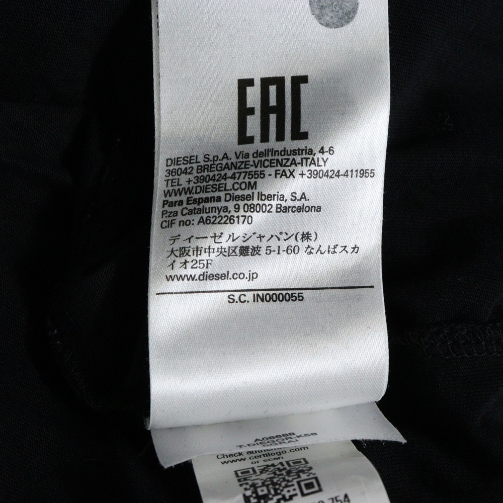 DIESEL ディーゼル T-DIEGOR-K75 ワッペンロゴ コットンクルーネックカットソー 半袖Tシャツ ブラック A12503 0GRAI
