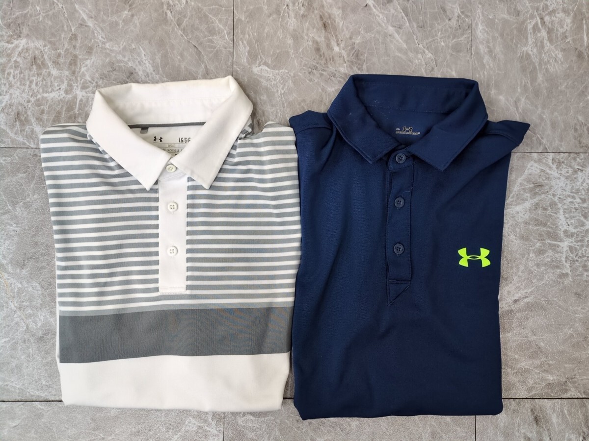 | 正規品です。 白グレー 目安 【肩幅】46 【着丈】70 【身幅】54 【袖丈】 【ウエスト】 【総丈】 【股下】 【裾幅】 2点とも襟に汚れ 紺:フロントに汚れ,バック裾付近薄汚れ |