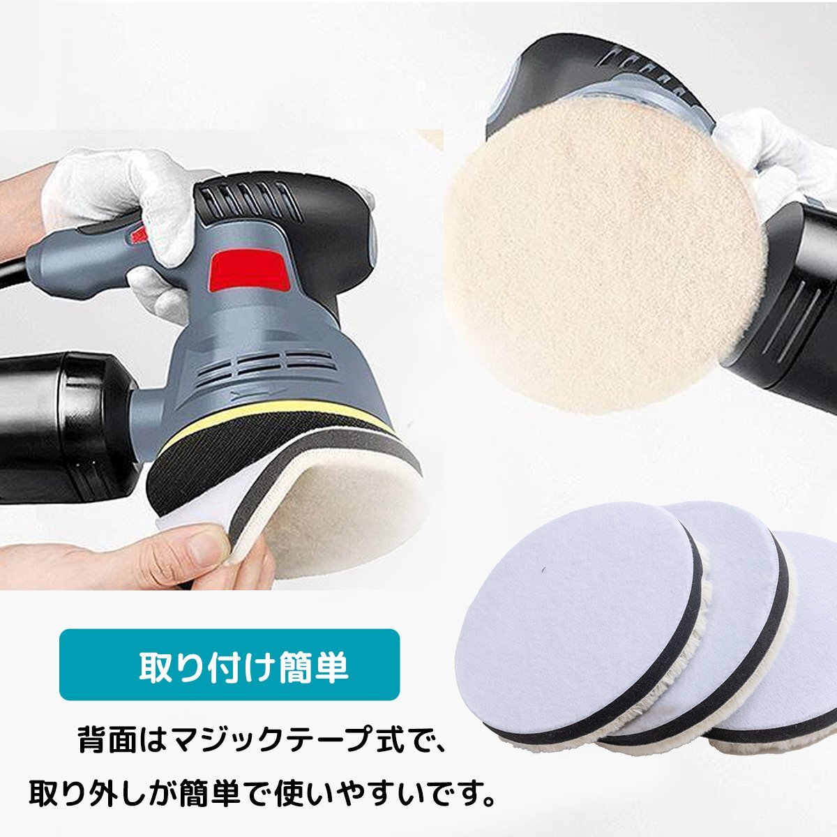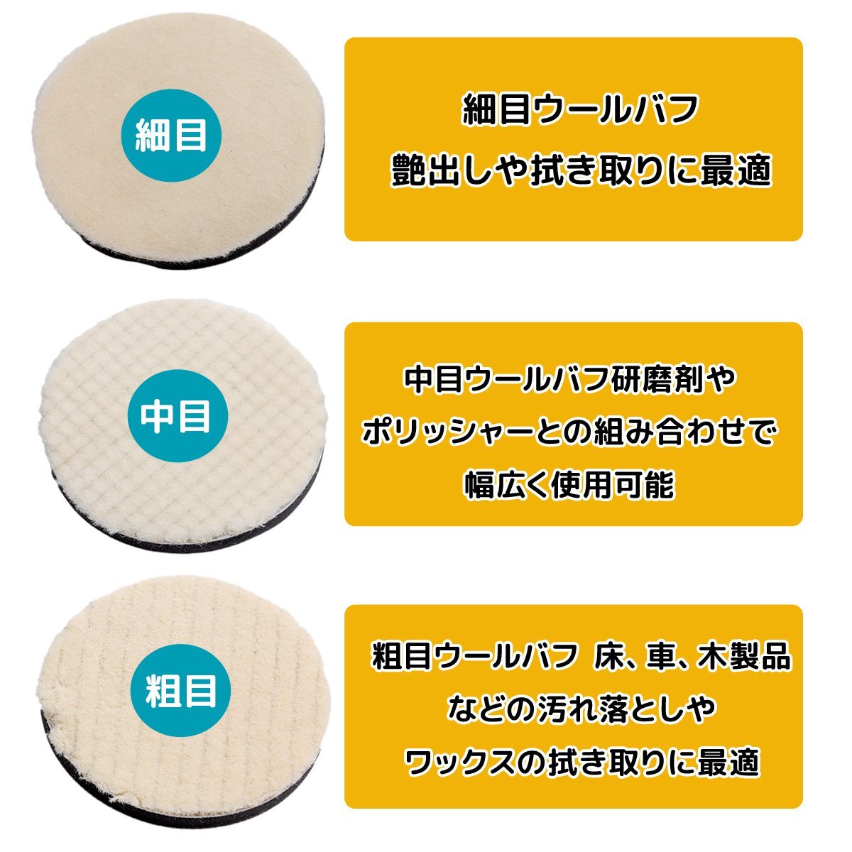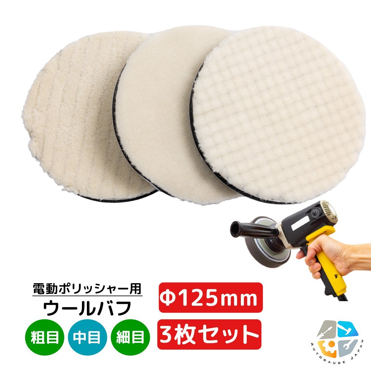 全国一律【送料無料】ウールバフ 研磨パッド 125mm 細目・中目・粗目 3個入り マジック式 ポリッシャー 車のワックスパッド 洗車