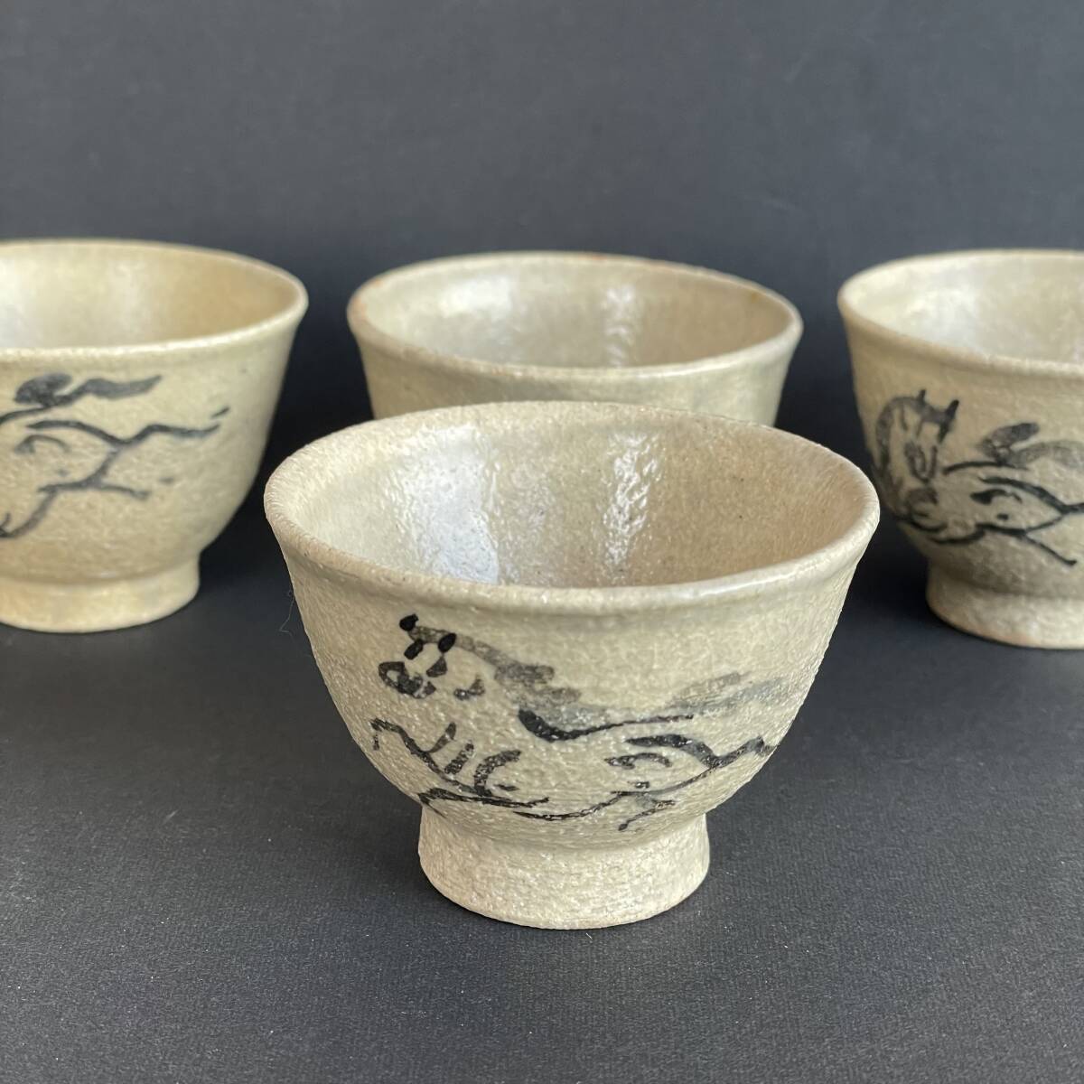 重要無形文化財 相馬焼 十四代田代法橋 田代清治右衛門 作 走駒之図 走駒 酒器 相馬駒焼 大堀相馬焼 跳駒 盃 杯 ぐい呑 酒盃