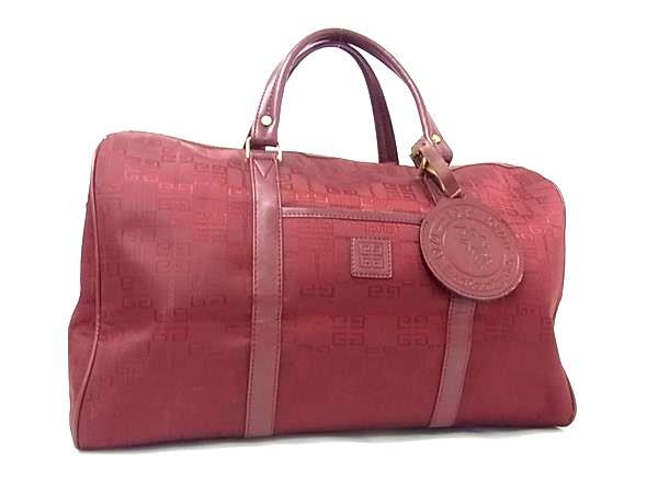 1円 ■美品■ GIVENCHY ジバンシィ キャンバス×レザー ボストンバッグ トラベルバッグ 旅行かばん ハンドバッグ レッド系 DB2608