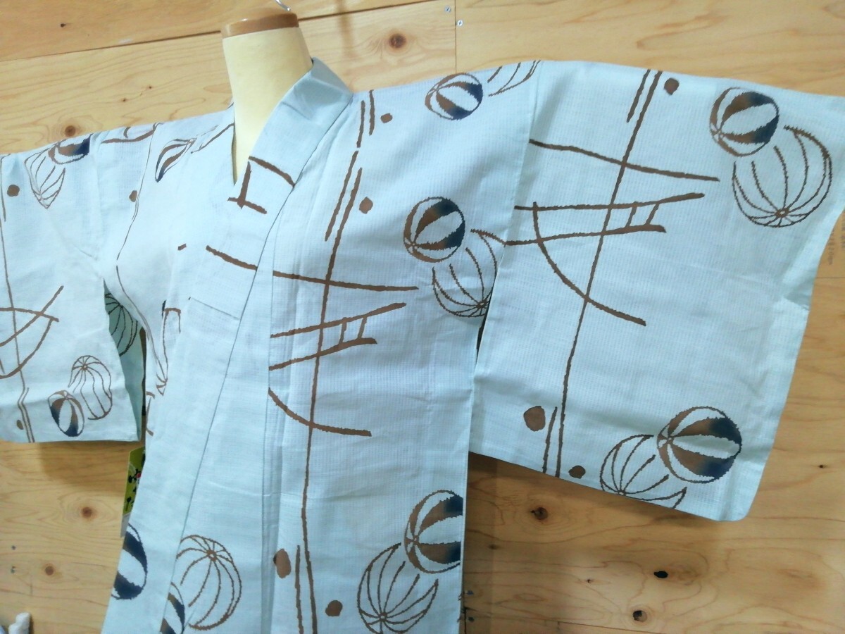 綿100%のしっかりとした素材の夏ゆかた 仕立上り品です。色柄もオシャレで素敵な色合いです。サイズが合えば永く使って頂ける品物です。