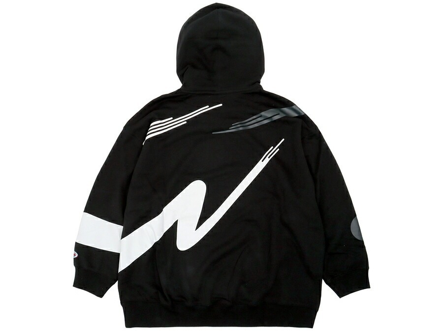 一日中快適に過ごせるように抜群に柔らかく快適なシェルパ素材を使用。フロントとバック部には大胆なホワイトカラーのビッグスウォッシュがプリントされており、ゆったりとした着用感のルーズフィットサイズです。