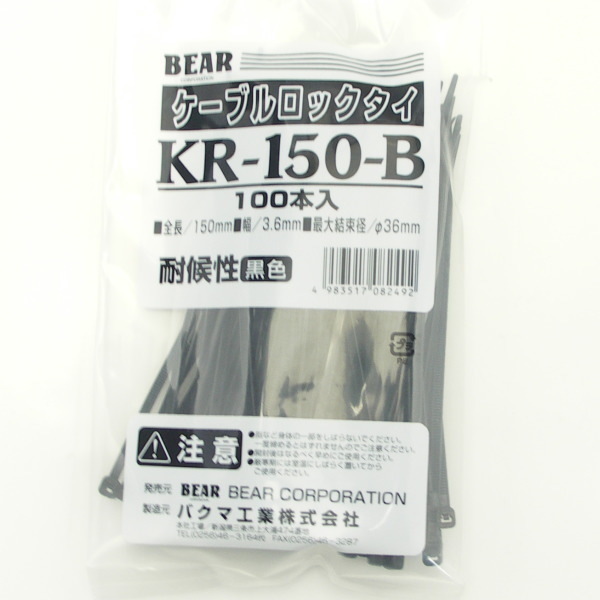 【新品】ケーブルロックタイ 150mm 黒 耐候性 100本入 結束バンド