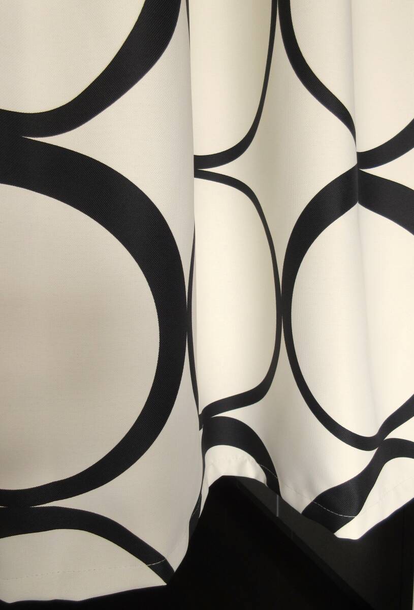 ・ しっかりとした高密度に織り上げた生地に大胆な幾何柄をプリントした3級遮光カフェカーテン