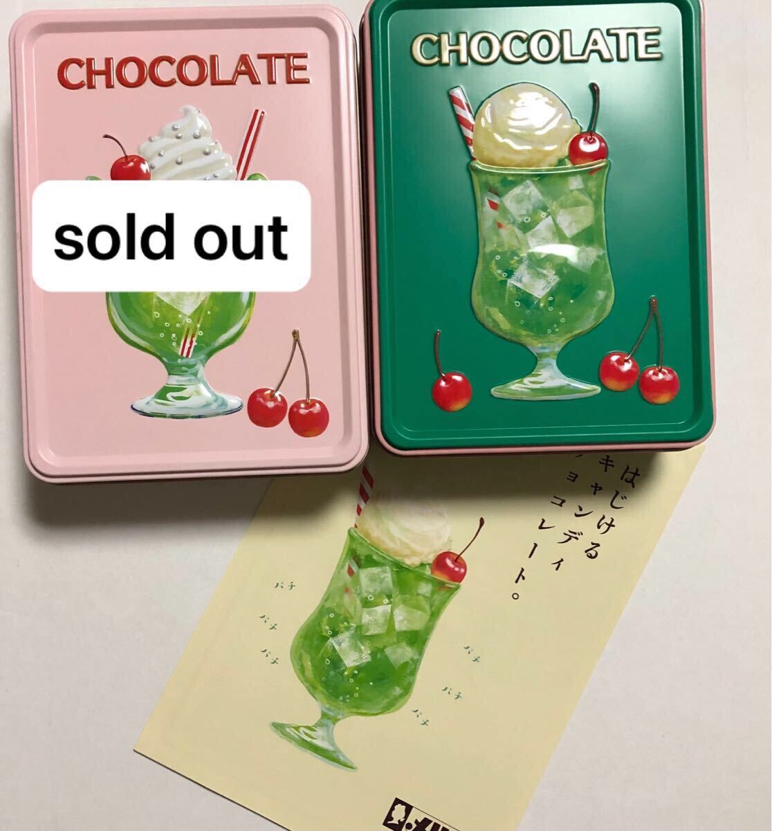 アイスクリームとチェリーのデザインが特徴のメリーチョコレート缶セット。