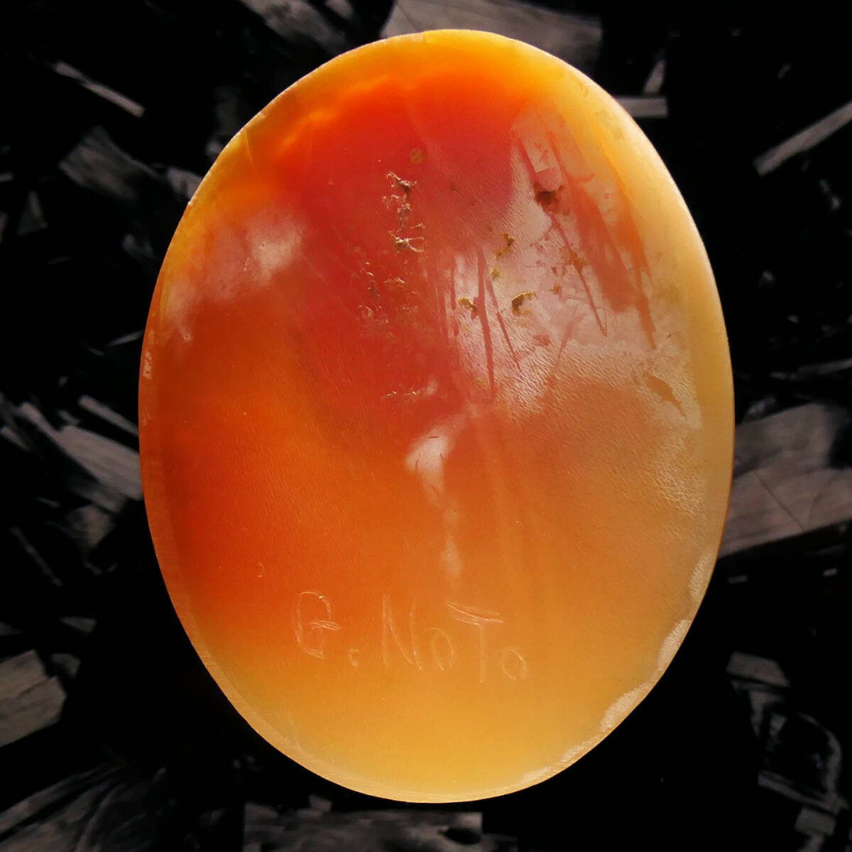 80年頃になると弟子の中でも技術力が高かったアンドレア・スカーラ氏やマリオ・ヴェントレスカ氏などが自身の名を入れ、裏には”Supervised G.Noto”などの銘が入ったものもありましたが、85年にはノトが亡くなったためこれらの作品は少なく、多くのノト監修のカメオにはG,Notoのサインのみが入っております。