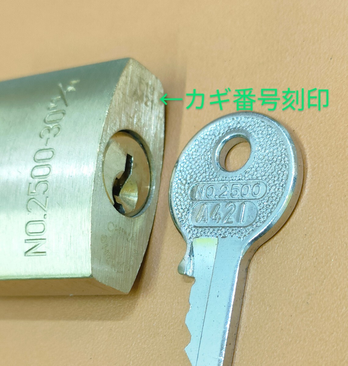 南京錠(No.2500-30㎜)のカギの挿し込み口に『A421』の刻印がしている南京錠のみ解錠できます。
