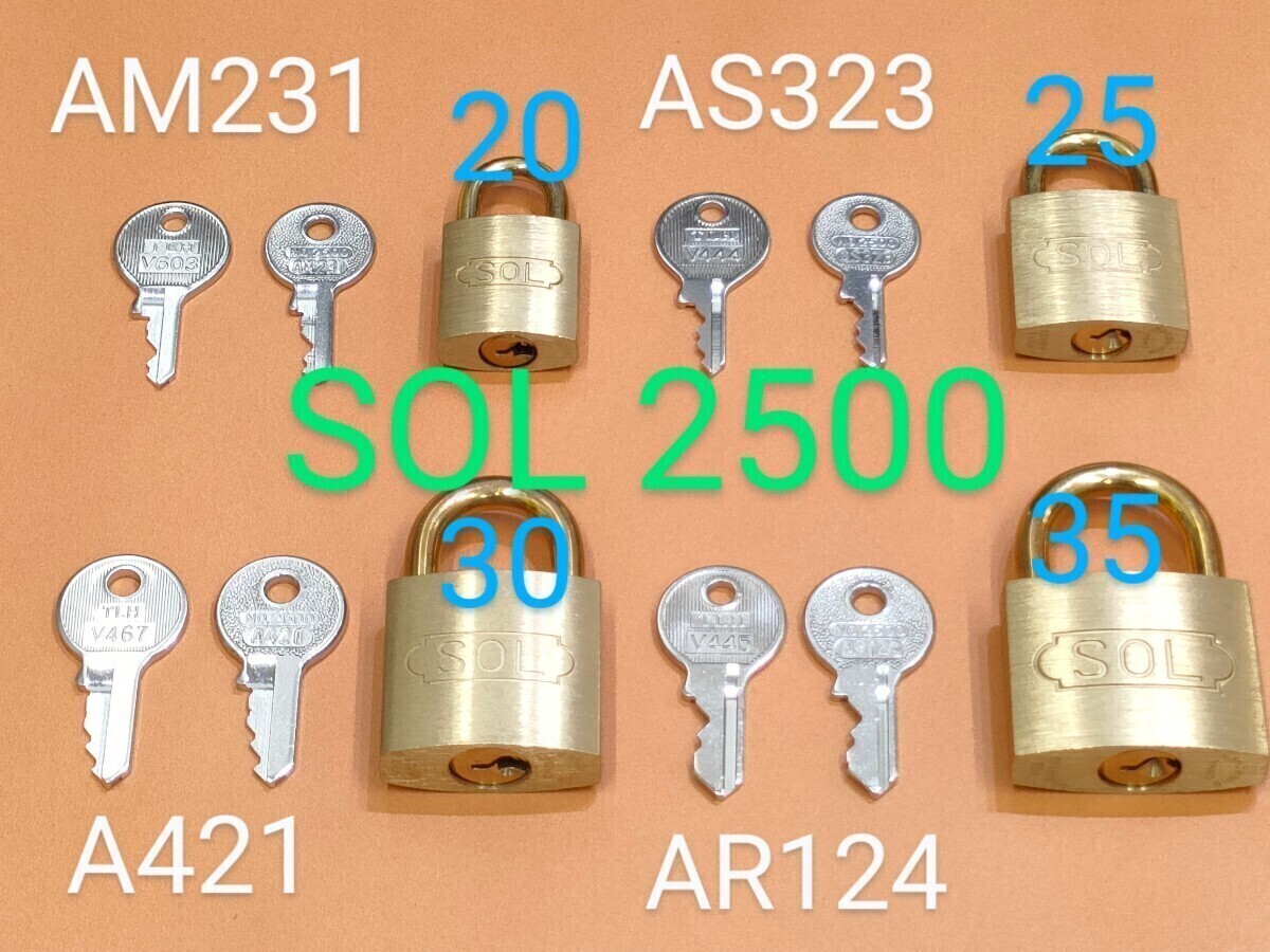 SOL 【A421】合鍵1本、南京錠、No.2500-30㎜、同一キー、ソル、カギ、ネコポス便匿名無料発送、南京錠カギ、SOLカギ、A421カギ