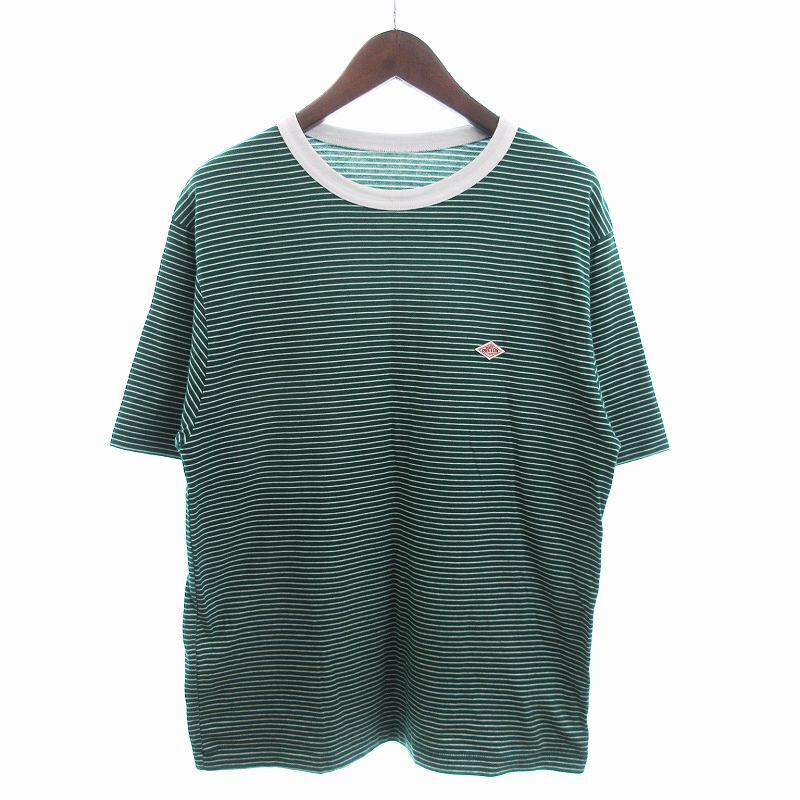 ダントン DANTON T-SHIRT SHORT SLEEVE Tシャツ カットソー 半袖 ボーダー ロゴ DT-C0054TCJ 緑 グリーン 40 メンズ