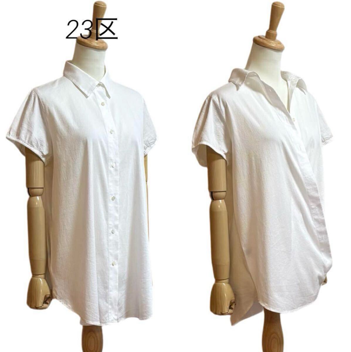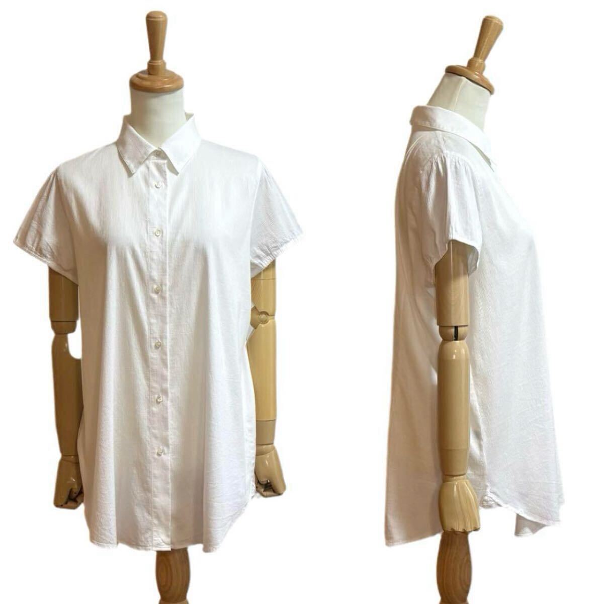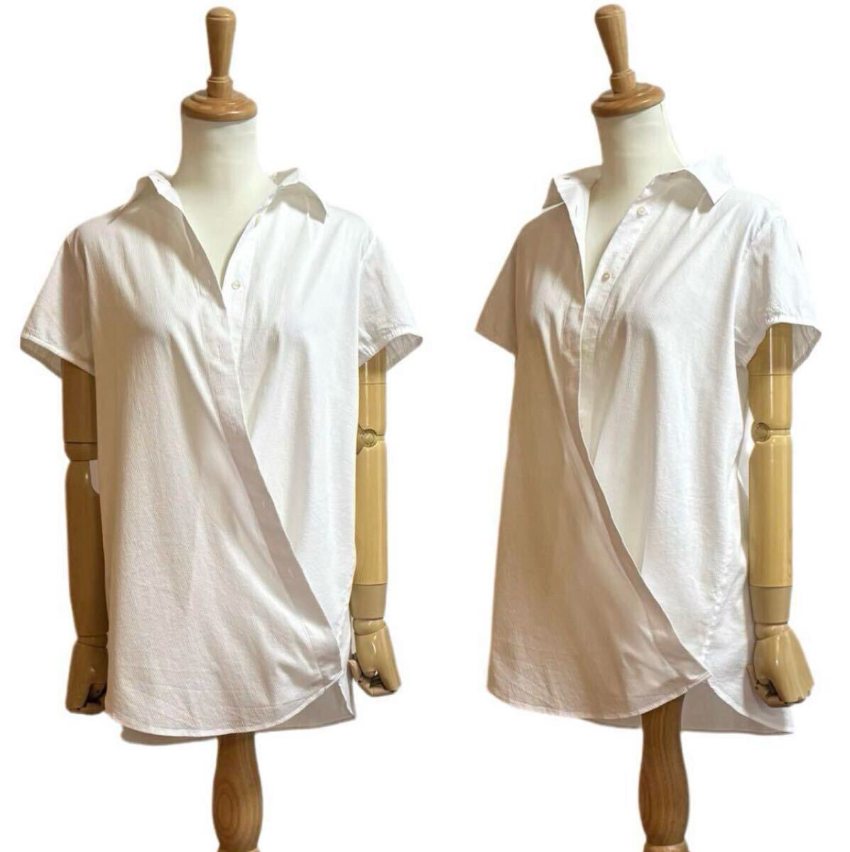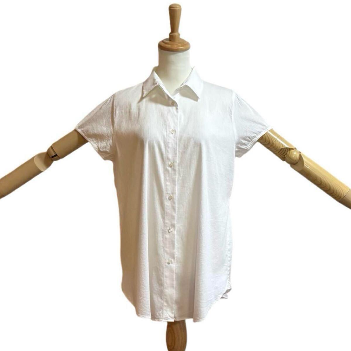 前開きのデザインは、ボタンを留めてブラウスとして、開けてカシュクールシャツ風にも着られる便利な2WAY仕様。キャップスリーブの袖口にはゴムを入れており、程よくフェミニンなニュアンスをプラスしています。きちんと感とリラックス感を兼ね備えた、デイリーに活躍する一着です。