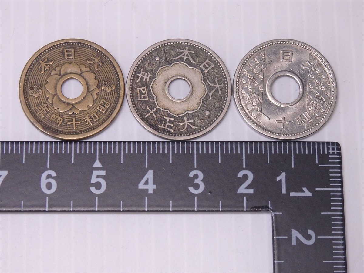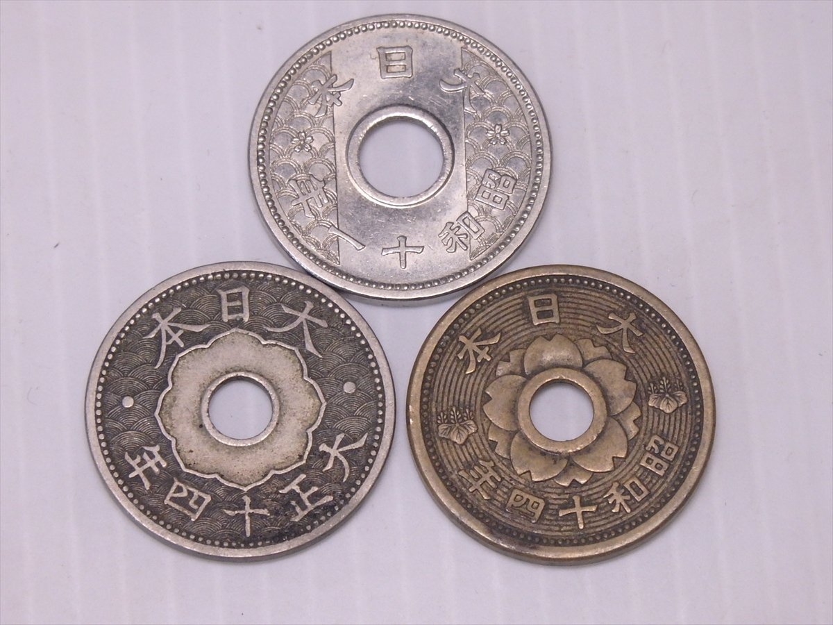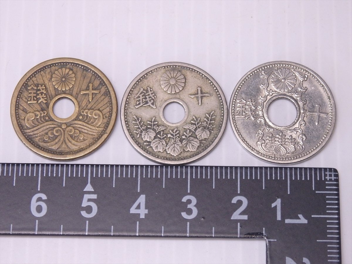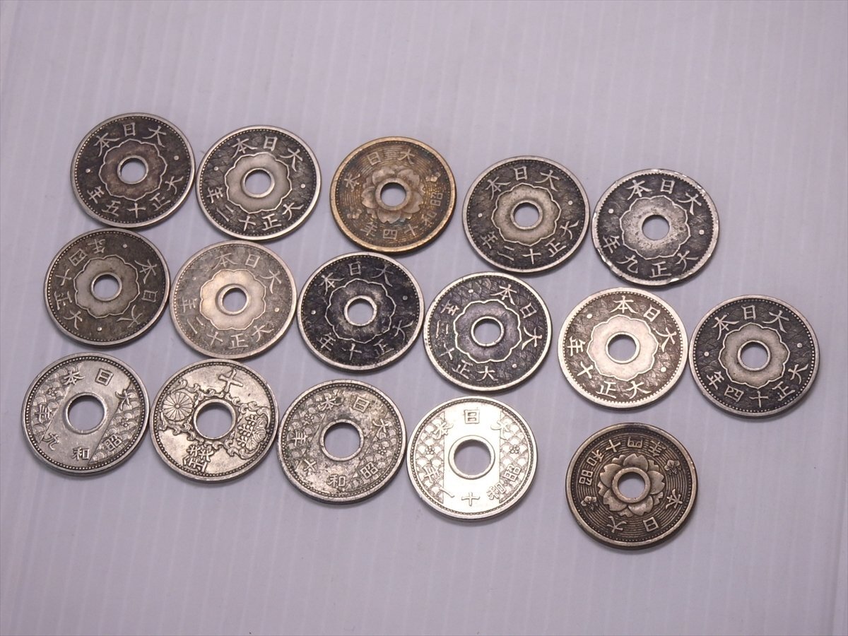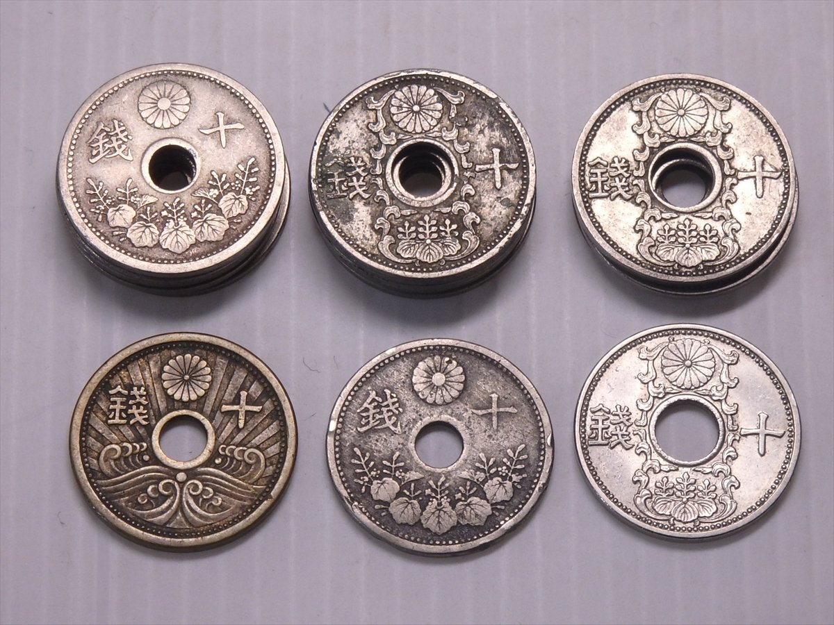 ★【10銭白銅貨 16枚】 大正~昭和 大日本 古銭 穴あき銭