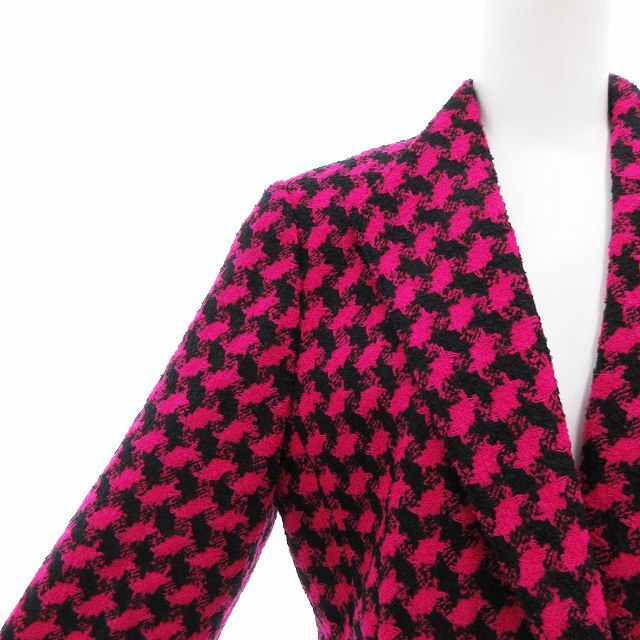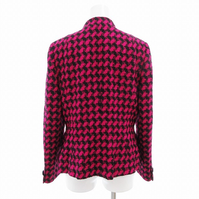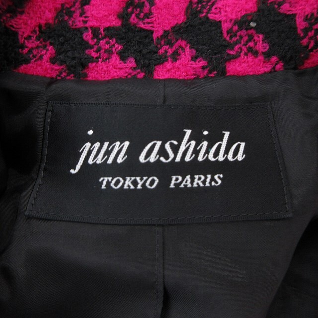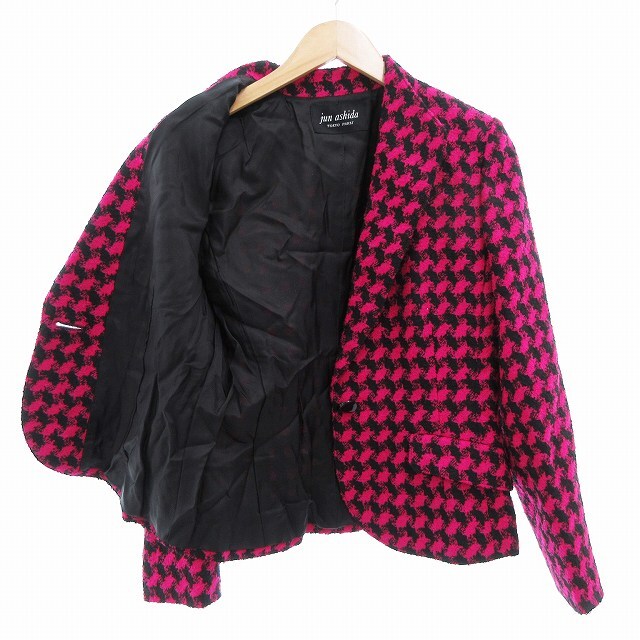 ジュンアシダ jun ashida テーラードジャケット 総裏地 シングル 千鳥格子柄 ハウンドトゥース 11 ピンク 黒 ブラック 秋冬