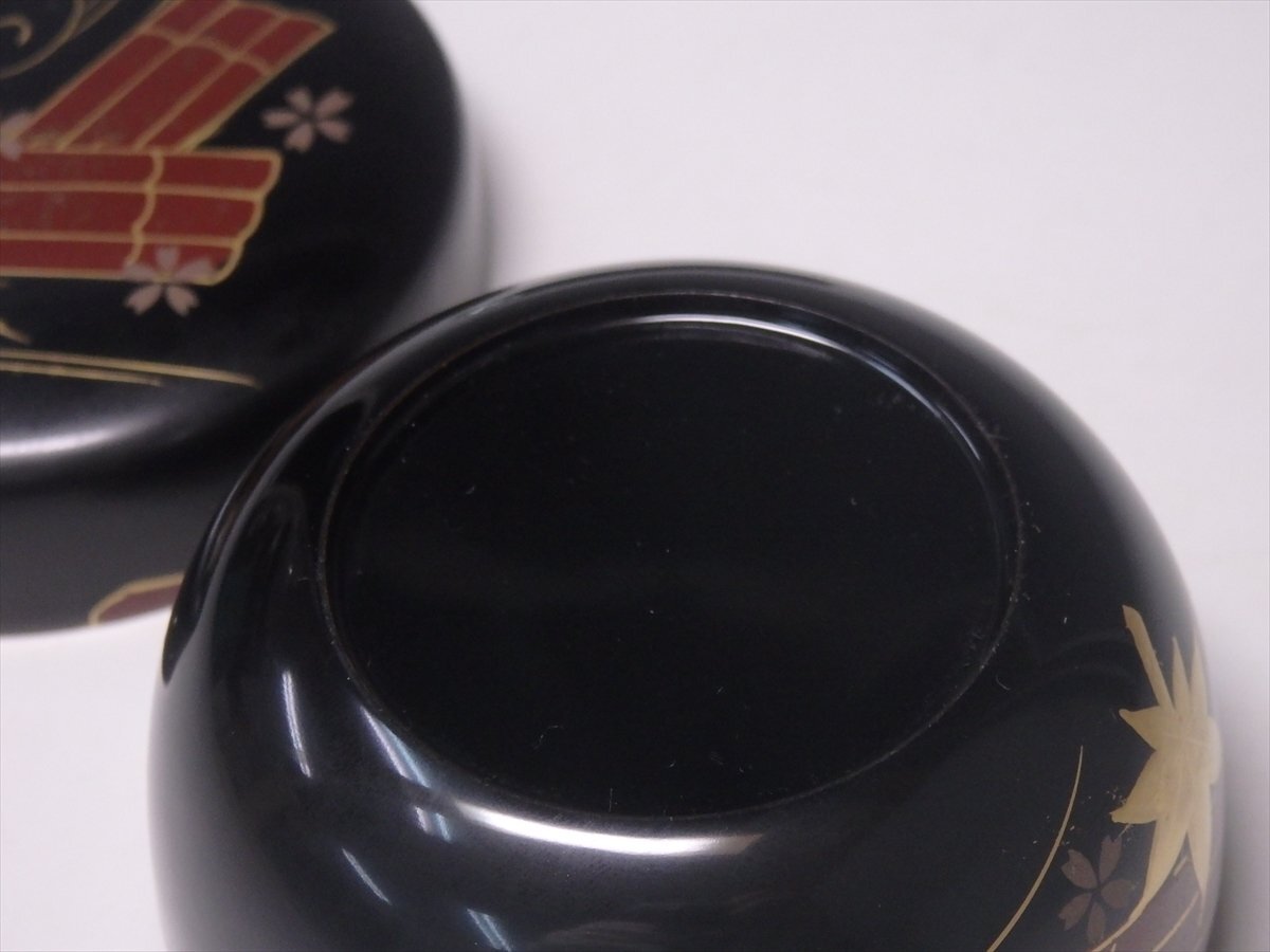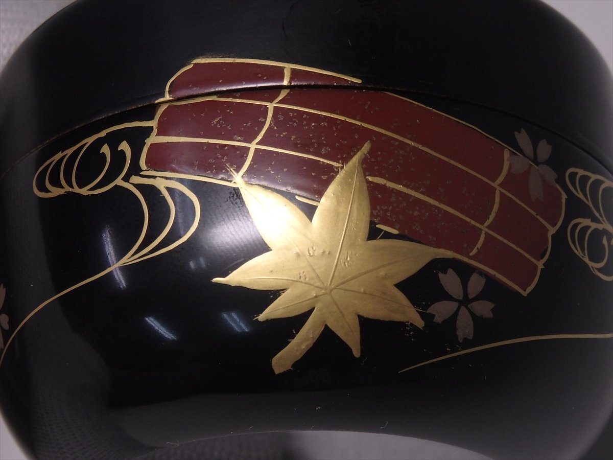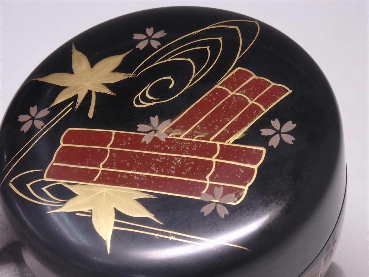 ★木製【花筏蒔絵 平棗】セール! レトロ 漆器 直径7.8×高さ5.3cm 春の桜 秋の紅葉 茶道具 茶器