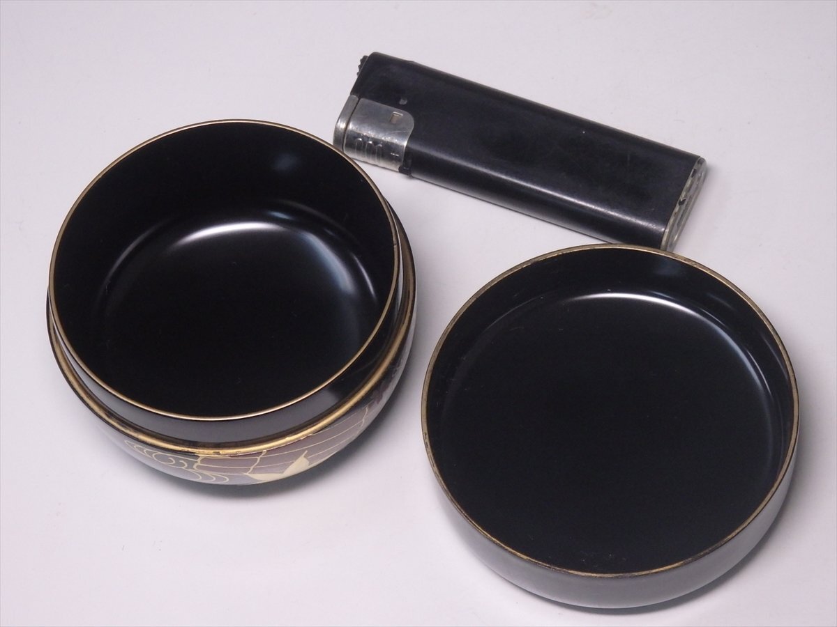 【管理番号5-0804030-6 スタッフコメント:iy】  ☆レトロなお品です。木製。筏に針の先ほどのキズがあります。金が散らされているので目立ちません。縁金に擦れあり。中はキレイです。