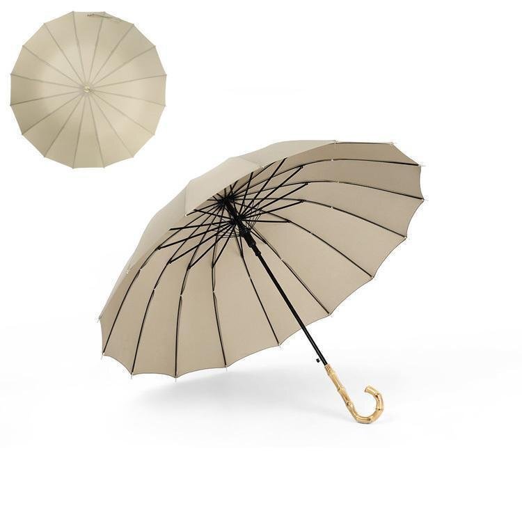竹柄防水雨傘 - 16本の骨構造、晴れの日も雨の日も通勤に最適