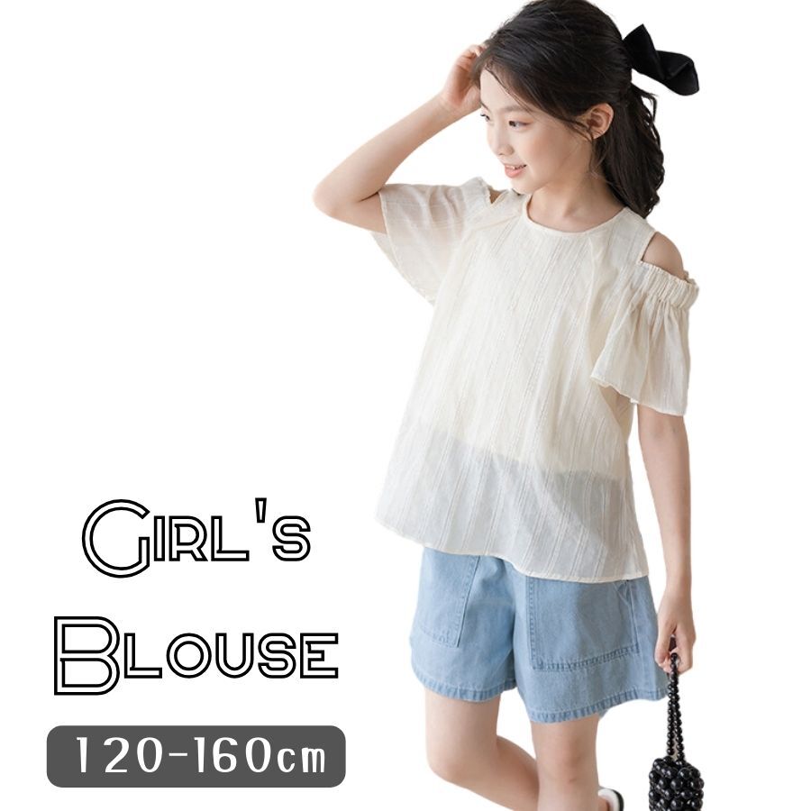 商品名 | 160cm オフショルダー 半袖 ブラウス 白 韓国子供服 女の子 キッズ ガールズ 春夏 かわいい 120cm 130cm 140cm 150cm 160cm |