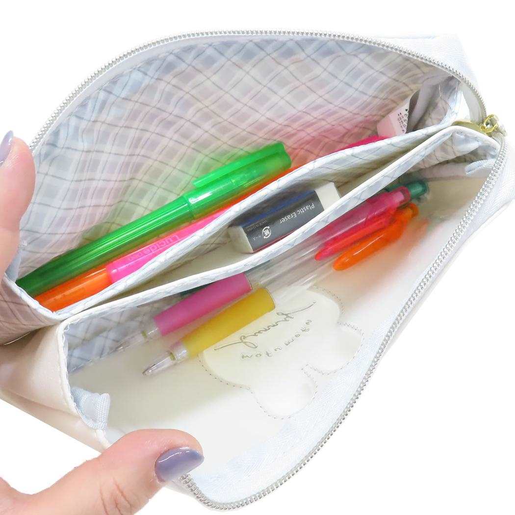 中を開けると3つに分かれているので仕分けにとっても便利 ふわふわでモフモフな仲良しアニマルたちがキュートな[モフモフアニマルズ]ステーショナリーシリーズこちらは大容量タイプの[サンカク2ルームペンケース]中を開けると3つのお部屋に分かれているので仕分けにとっても便利マチもたっぷりでハサミなども入る大容量サイズです同シリーズのかわいい文具いろいろあるのでお気に入り揃えてくださいサイズ:210x90x30mm素材:PU合皮/PVC/ポリエステル、合金
