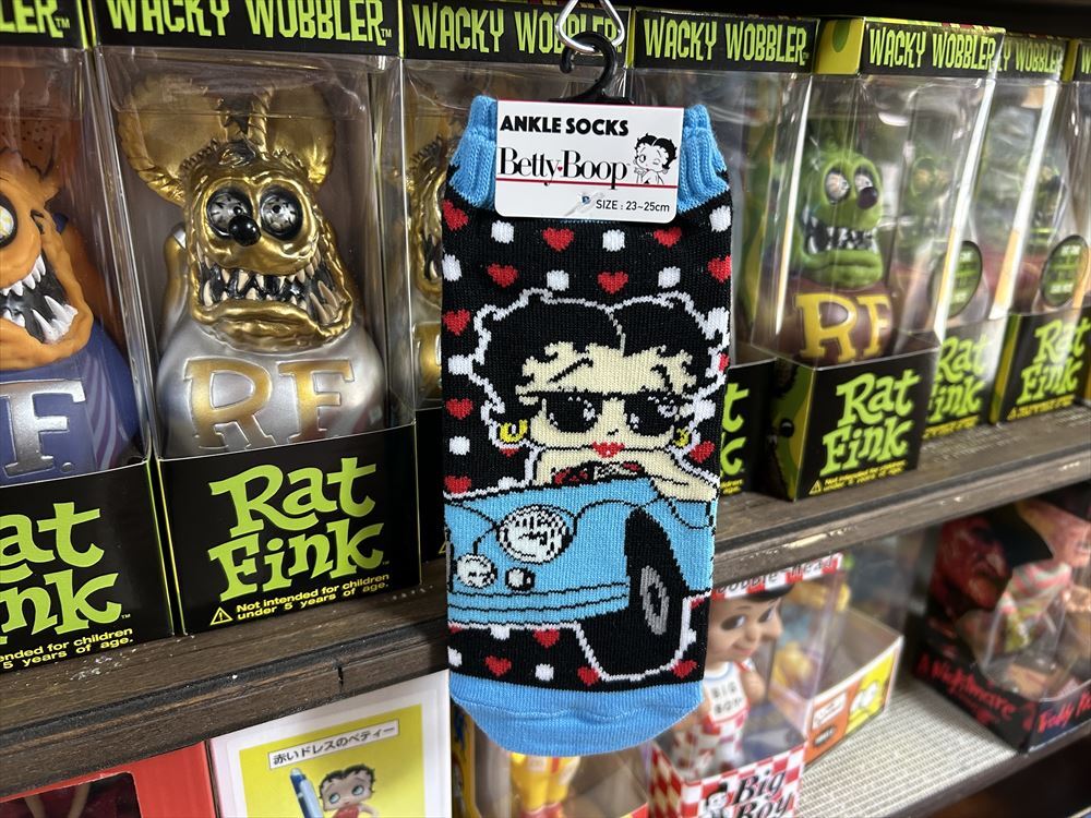 【214198】超人気のアメリカン雑貨のキャラクター!!!!ベティブープのアイテム レディースのアンクルソックスです。アンクルソックス・・くるぶしあたりまでの短めのソックス、正面にドーンとべティが描かれていて、靴を脱いだら目立つの間違い無し サイズ23~25cm 素材 ポリエステル,ポリウレタン