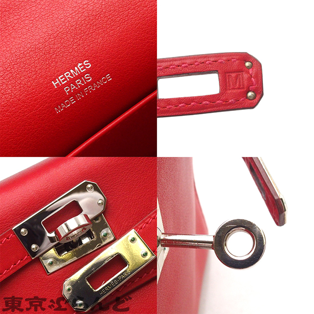 101783606 エルメス HERMES ポシェットケリー □M刻印 ルージュカザック シルバー金具 スイフト クラッチバッグ レディース