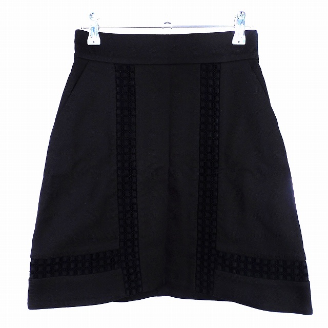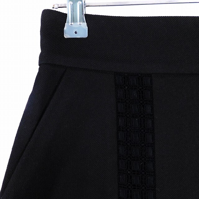 ジルスチュアート JILL STUART 台形スカート ミニ バックファスナー 切替 レース 0 黒 ブラック ボトムス /T2 レディース