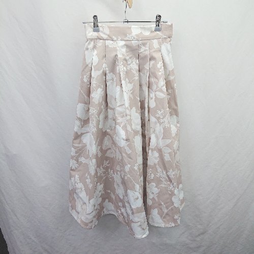 ◇ ⊂ ジュリアフラワー エレガント系 花柄 ロング フレア タックフレアスカート サイズF ベージュ系 レディース E