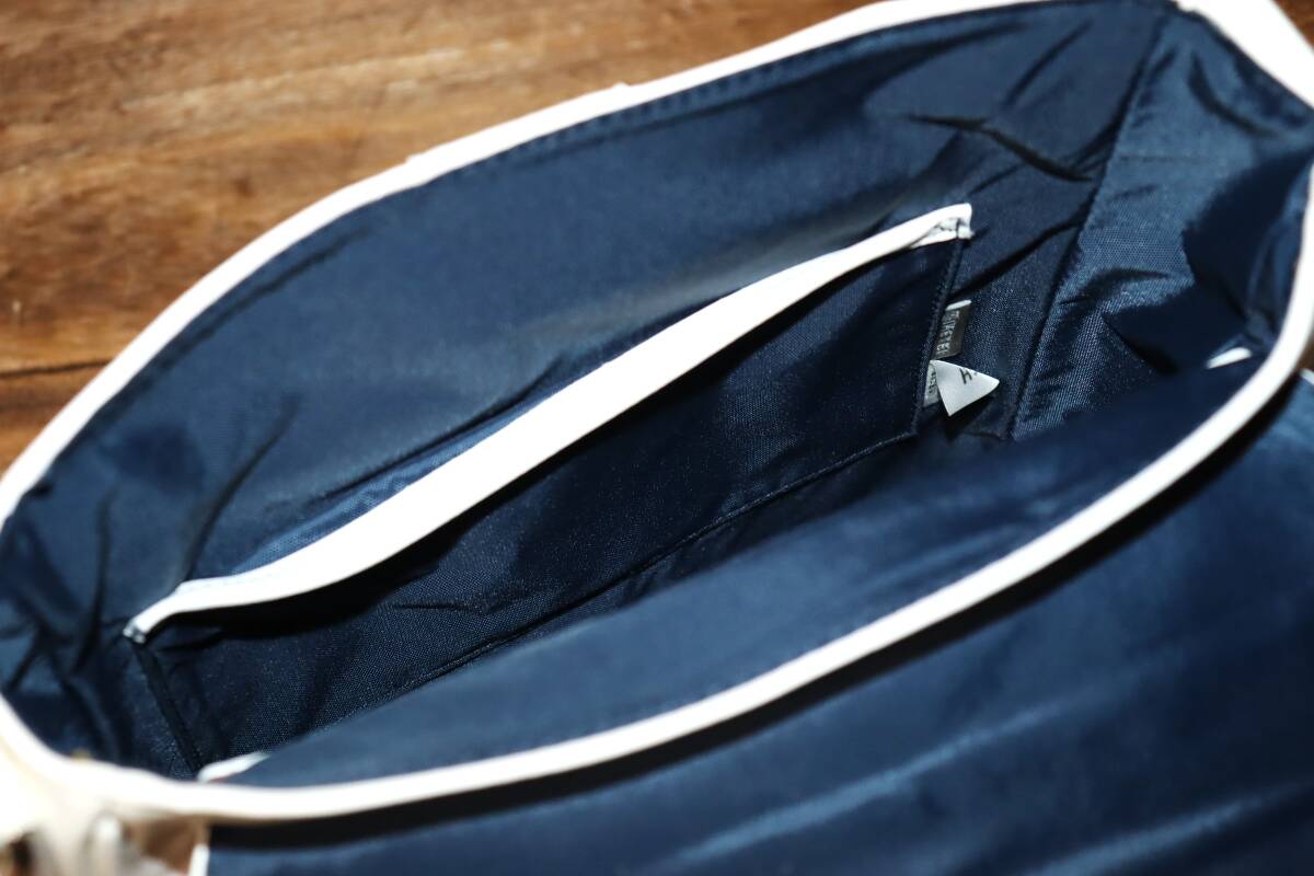 ブランドがさりげなく表現され落ち着きのあるバッグに引き締めるデザインになっています。