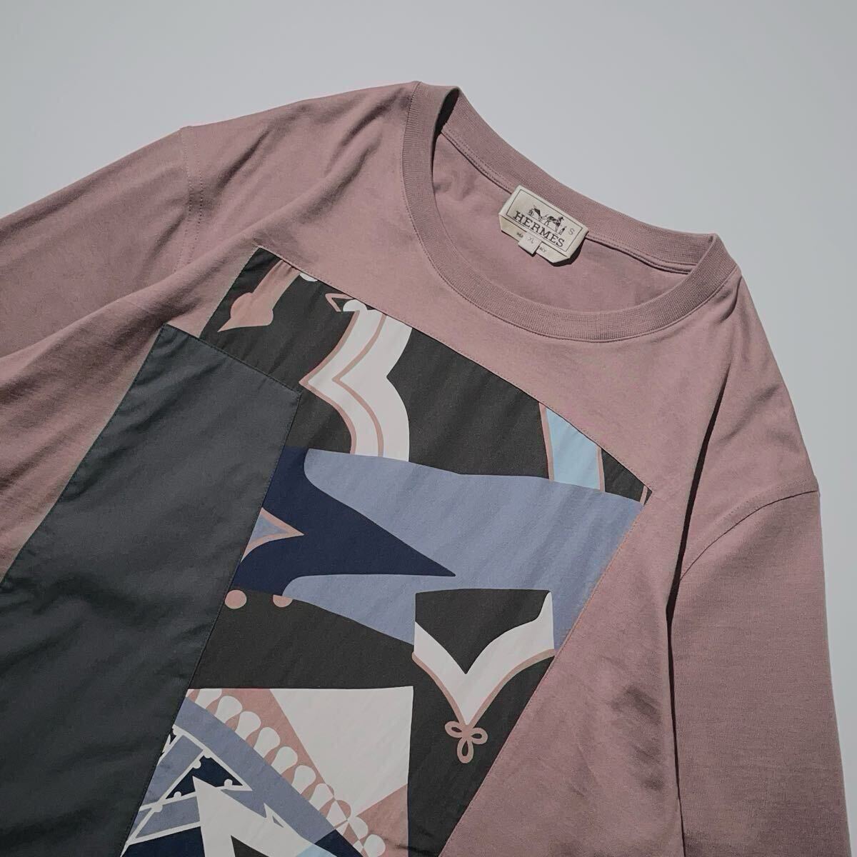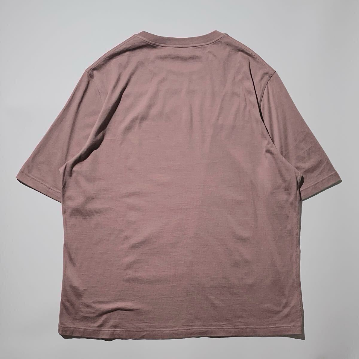 一部シルクが使われたプリントが切り替えで付けられたTシャツ。
