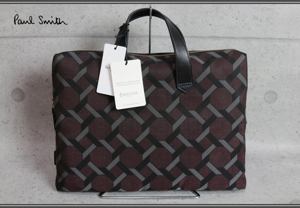 新品ポールスミス最高級ベルボアタイル生地ビジネスバッグ深赤