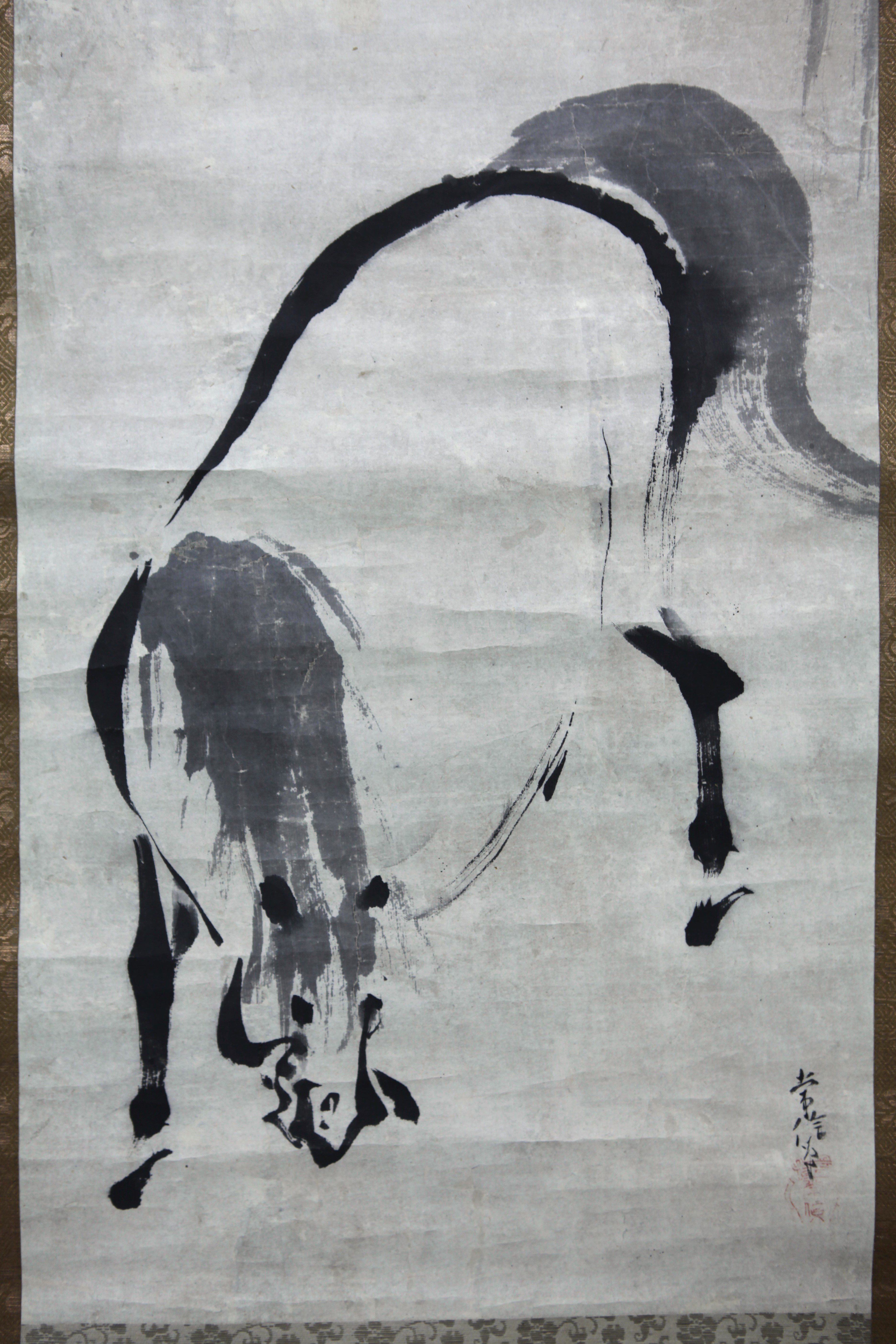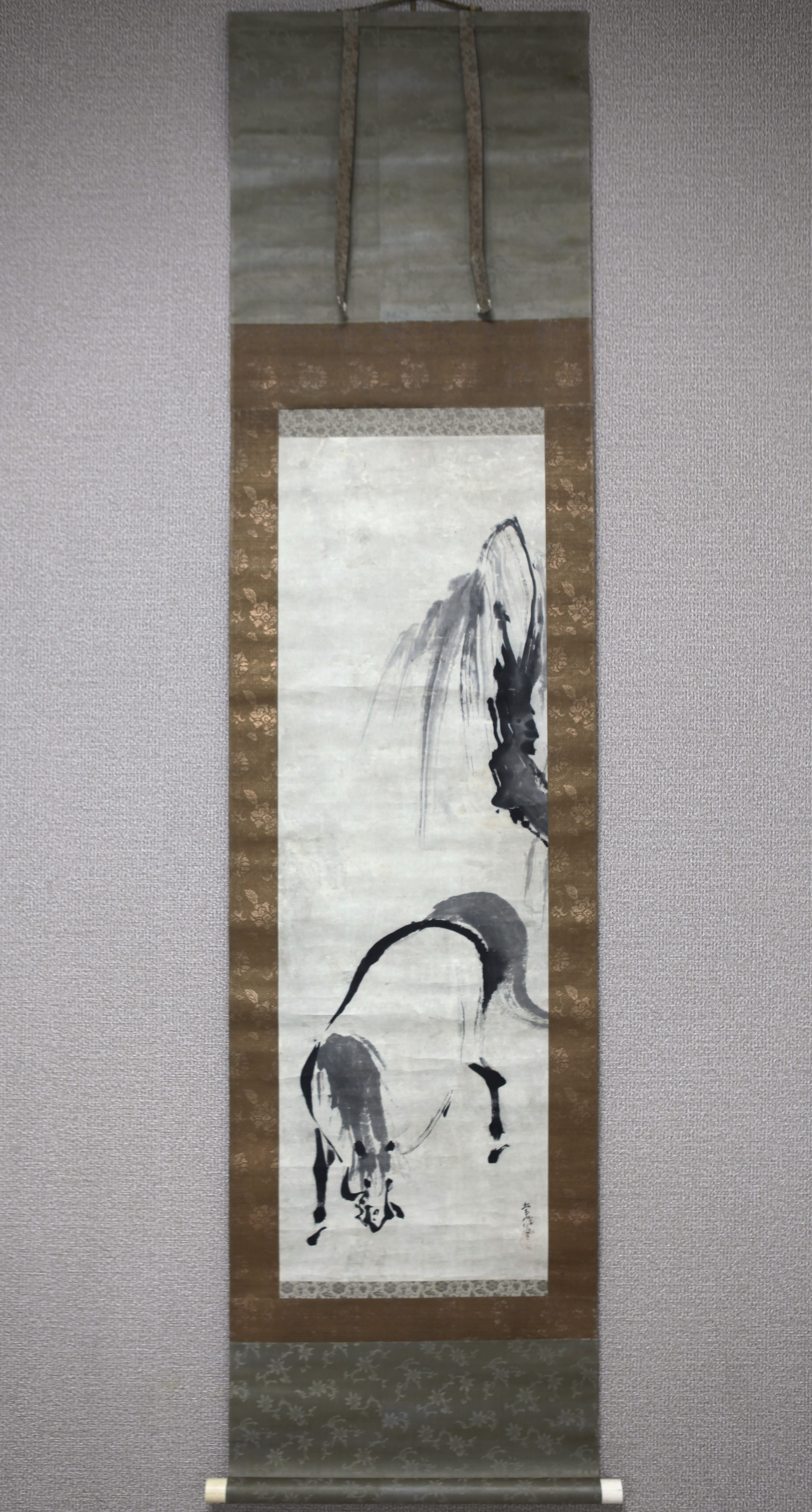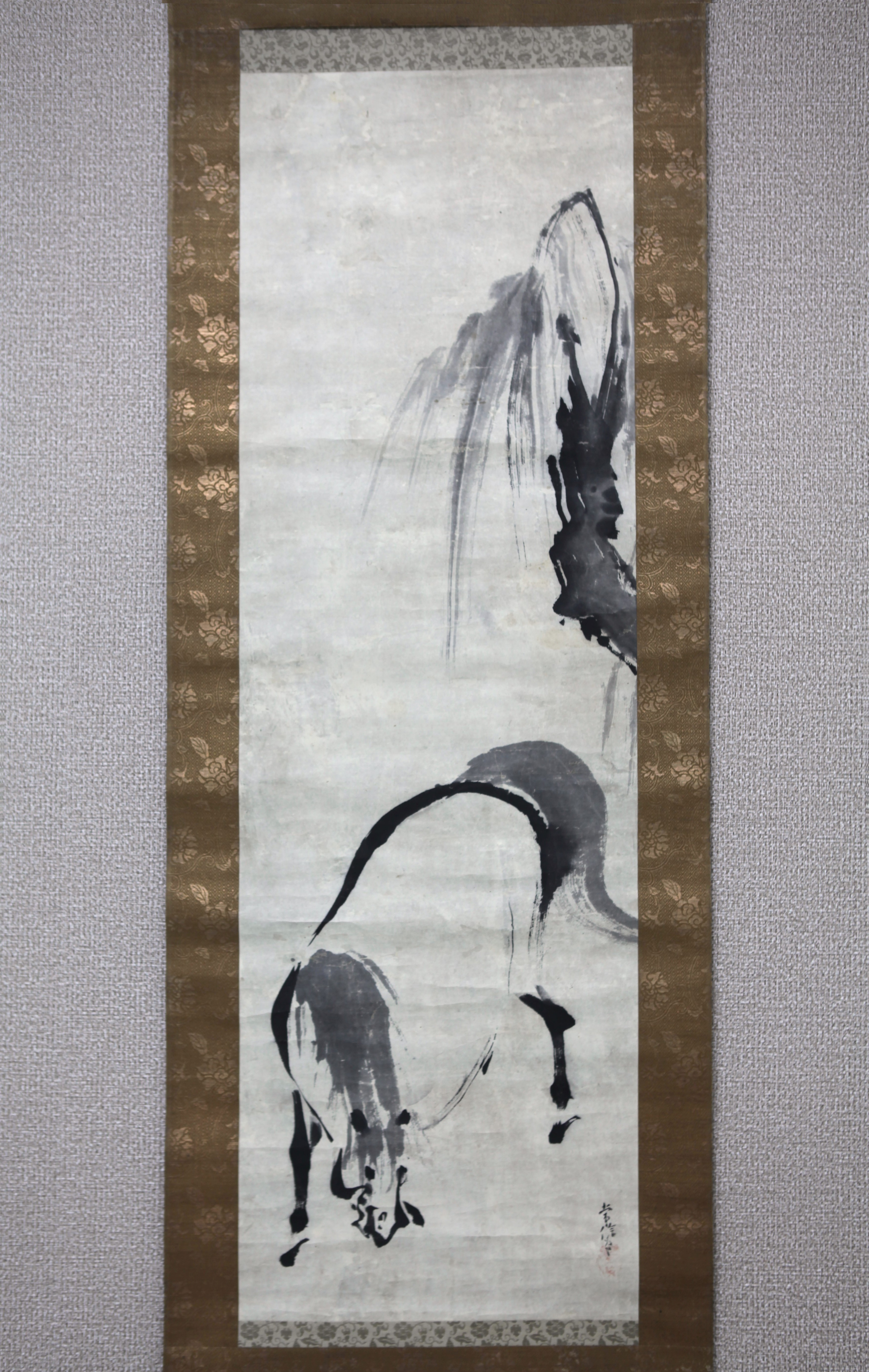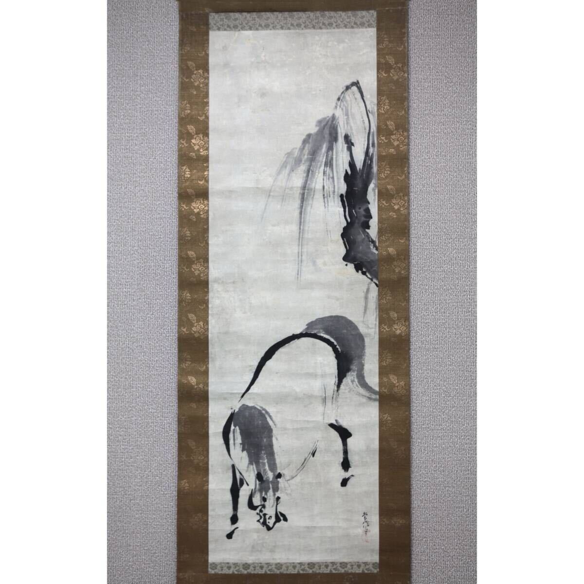【真作】【風車】 狩野常信 「柳下馬図 」◎肉筆紙本◎江戸時代前期の画家 京都の人 狩野尚信の長男 幕府の奥絵師 法印 木挽町狩野家 | ||||||||||||||||||||