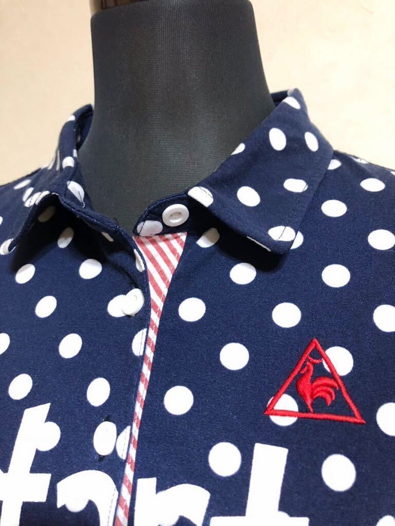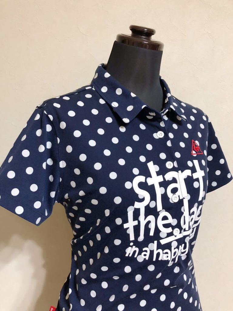 le coq sportif golf ルコック ゴルフ ウェア レディース ポロシャツ ドット柄 トップス サイズL 半袖 ネイビー 白 水玉柄 デサントQGL2514