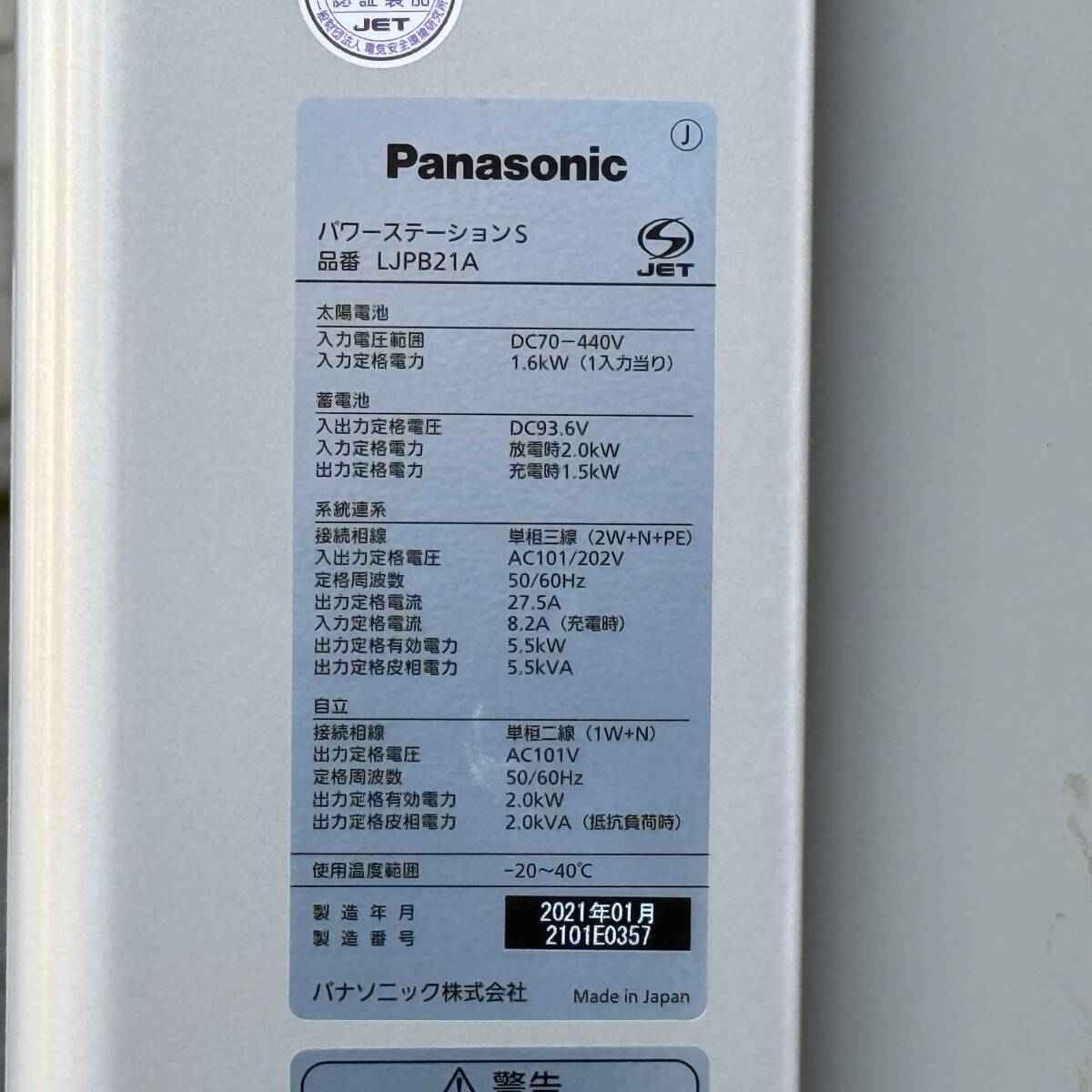 パナソニック 創蓄連携システムS PLJ-B21A リチウムイオン蓄電池ユニット パワーステーションS ※直接引き取り推奨