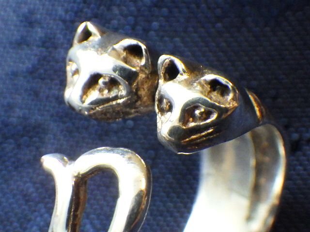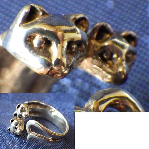 ヴィンテージ ネコ シルバー製 アニマル リングです。