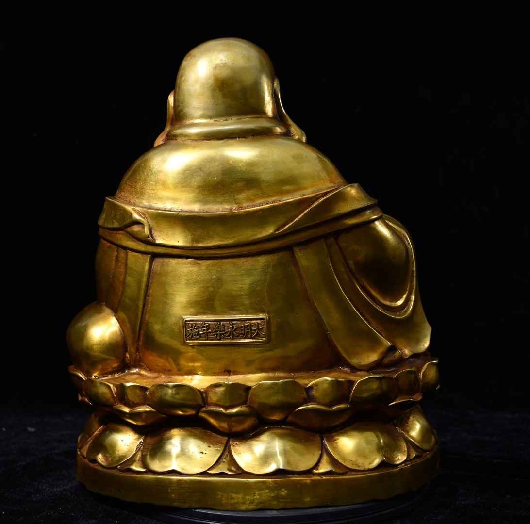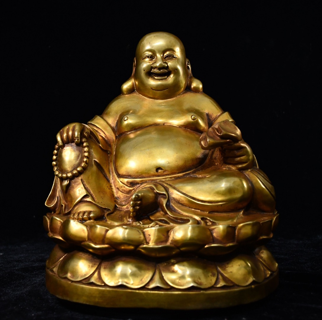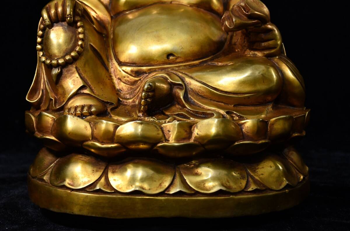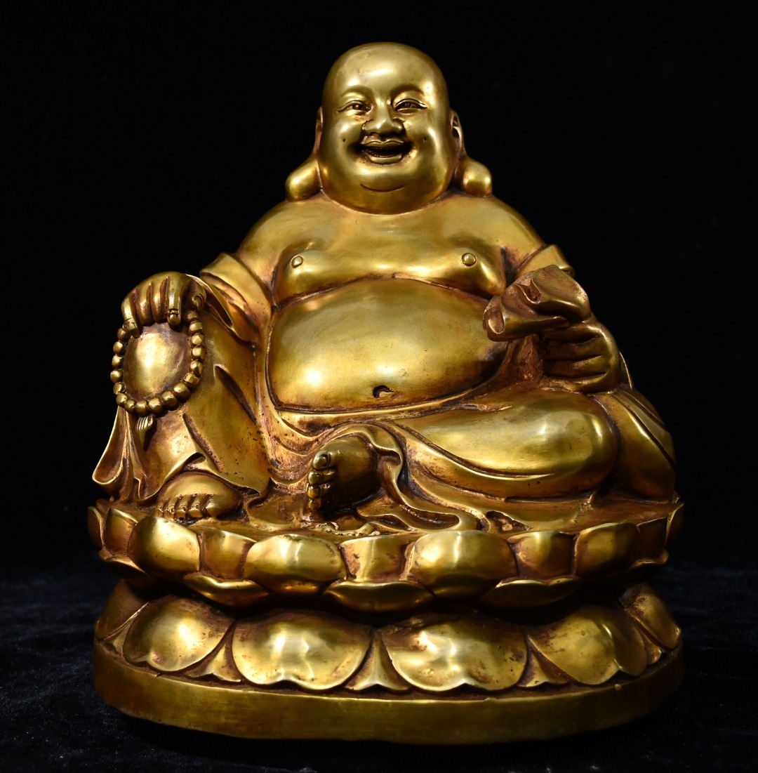 唐物 大明 永樂年製 銅塗金 弥勒仏 笑弥勒 精銅鑄造 通體塗金 仏像 奉納されていた 供養品 銅製 古美術品 時代物 中国古玩 骨董品 D68
