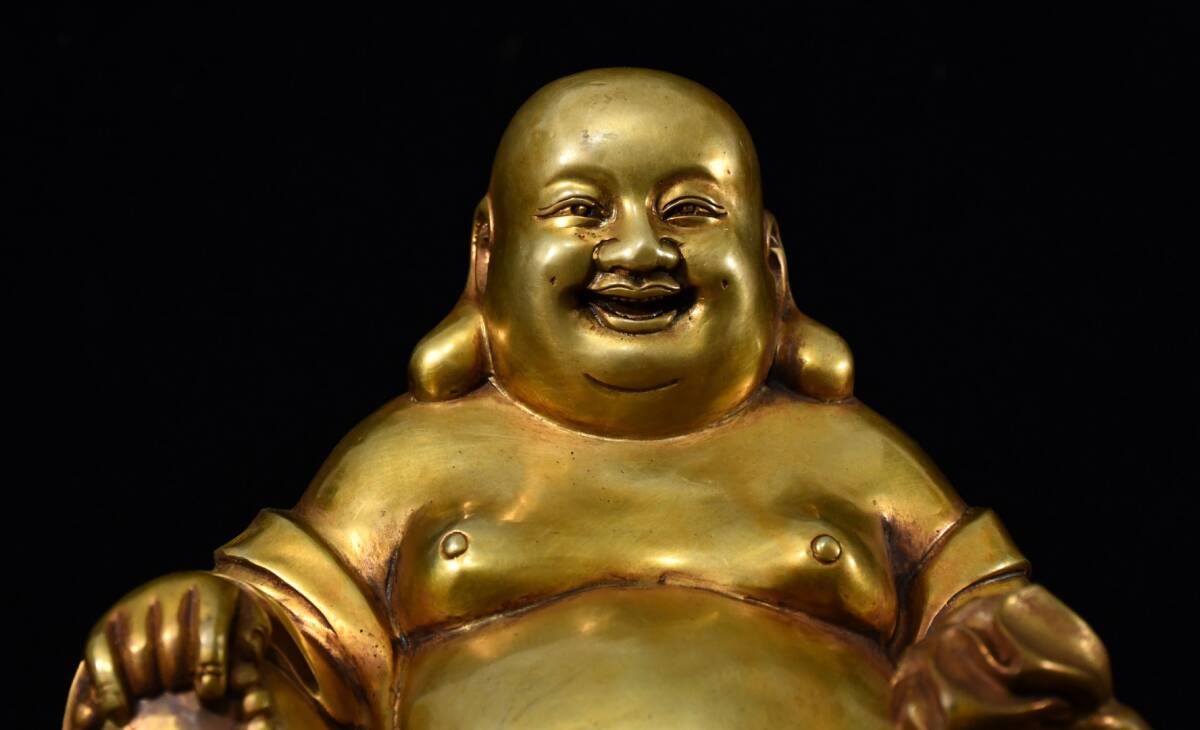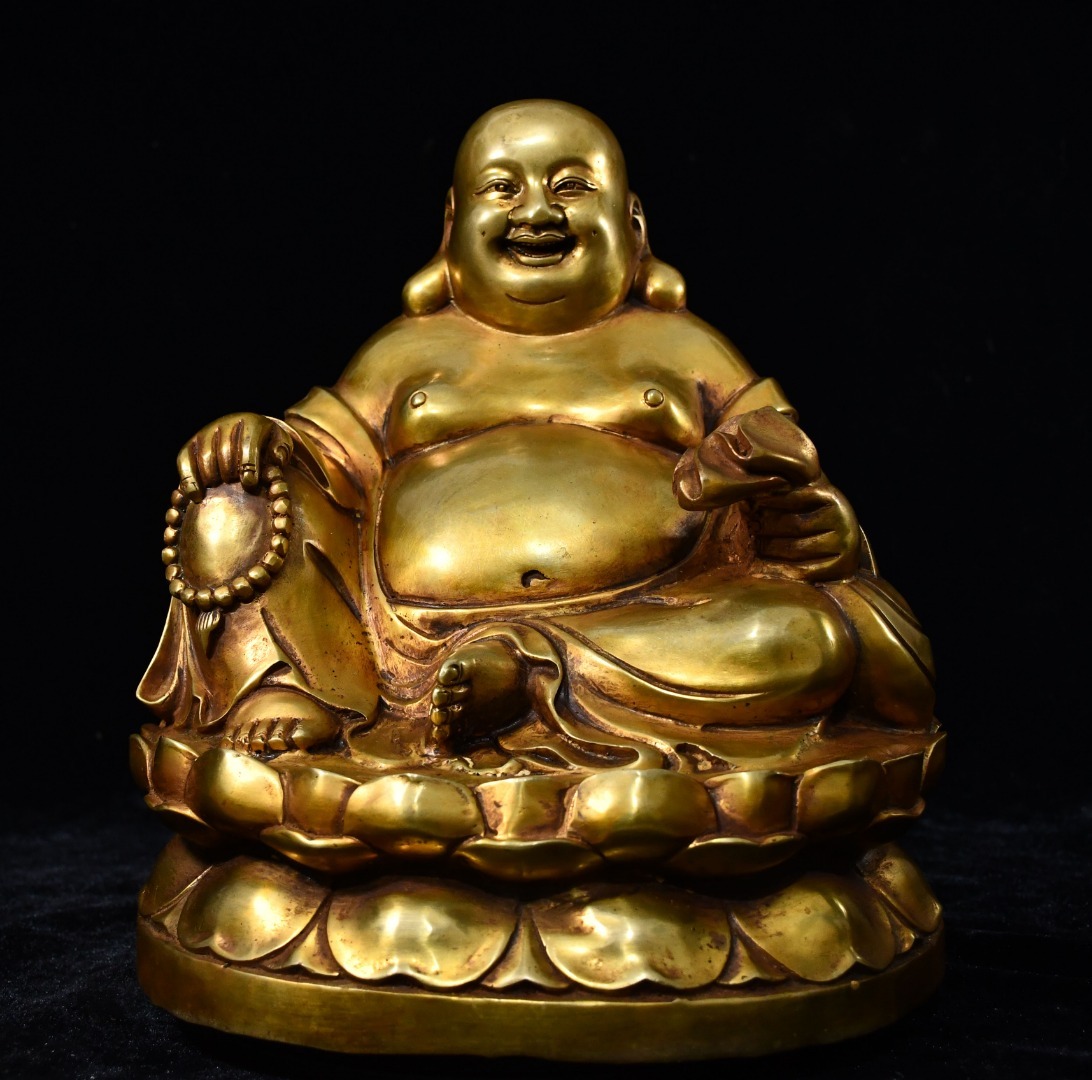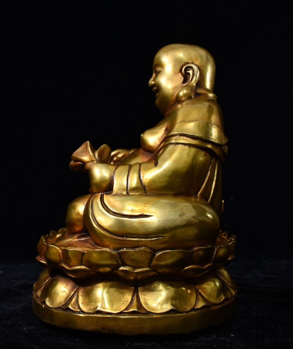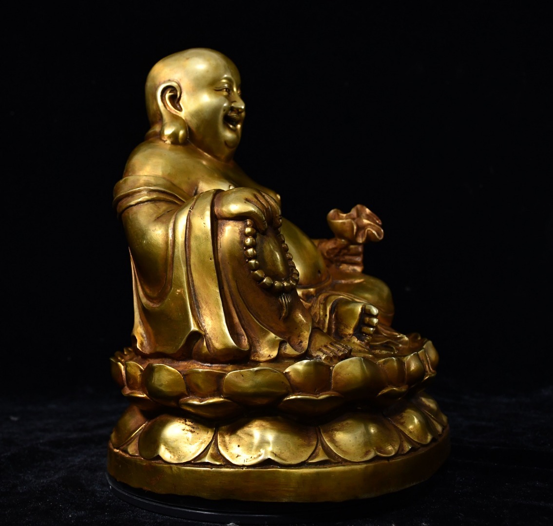 唐物 大明 永樂年製 銅塗金 弥勒仏 笑弥勒 精銅鑄造 通體塗金 仏像 奉納されていた 供養品 銅製 古美術品 時代物 中国古玩 骨董品 D68