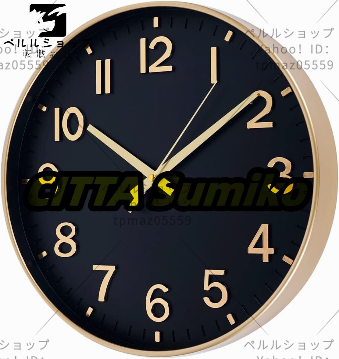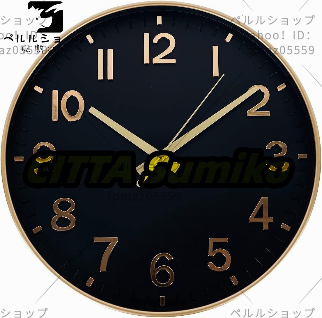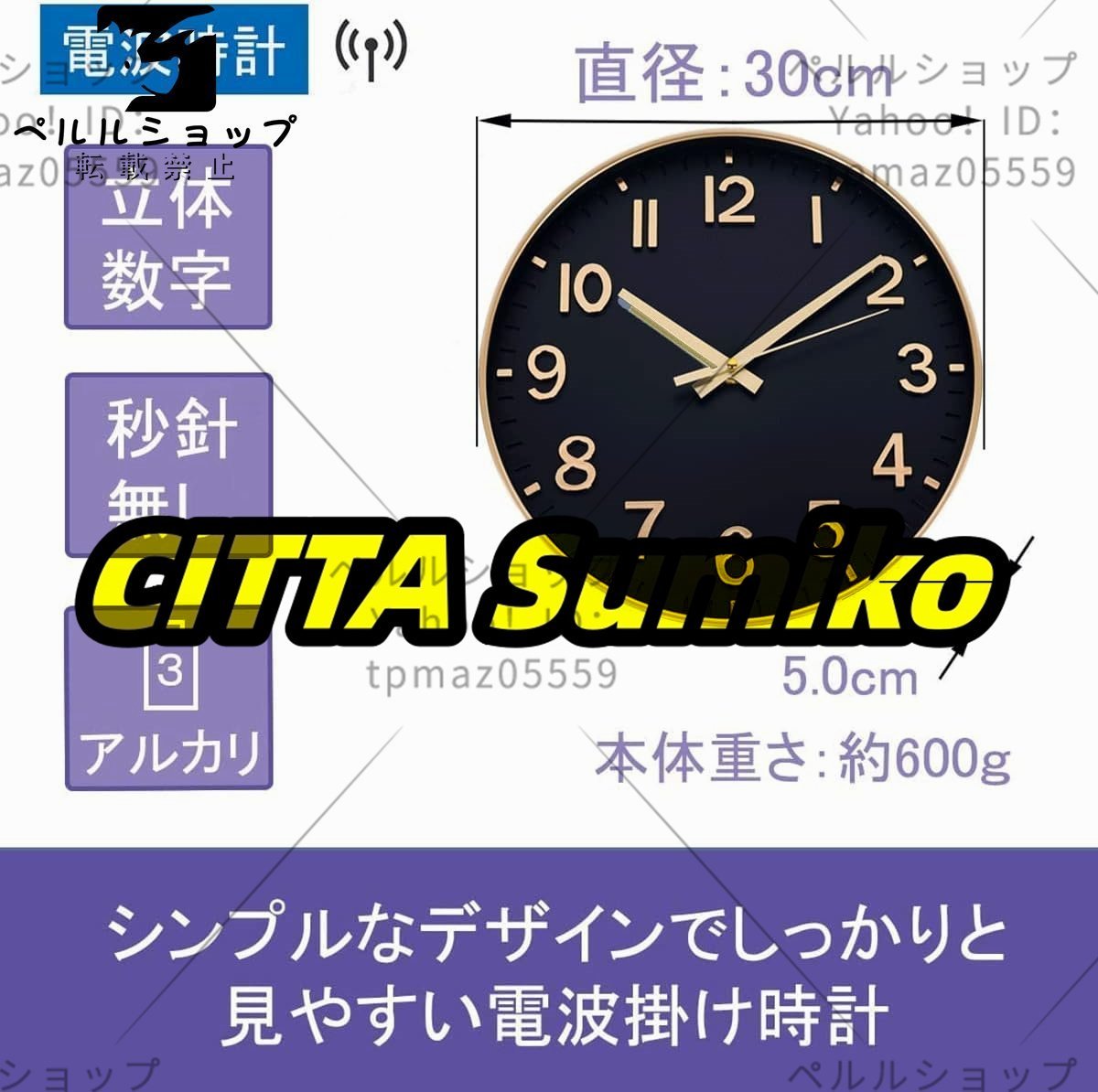 掛け時計 電波時計 おしゃれ 北欧 連続秒針 静音 壁掛け時計 夜間秒針停止 掛時計 インテリア 大数字 見やすい 30cm ブラック