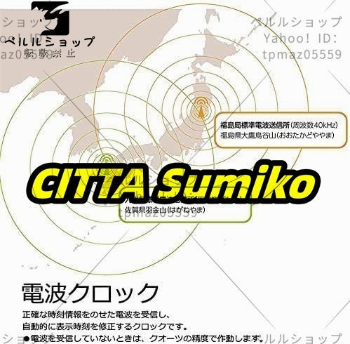 • 【電波時計】■電波受信機能:自動受信/手動受信 ■秒針停止機能(午後12時~午前6時) ■使用電池:単3アルカリ乾電池1本(付属致しません) ■材質:ガラス/プラスチック ※取扱説明書が付属して(取扱説明書を詳しくお読みください)
