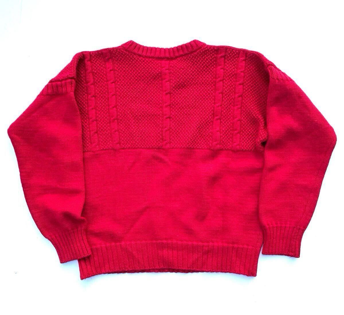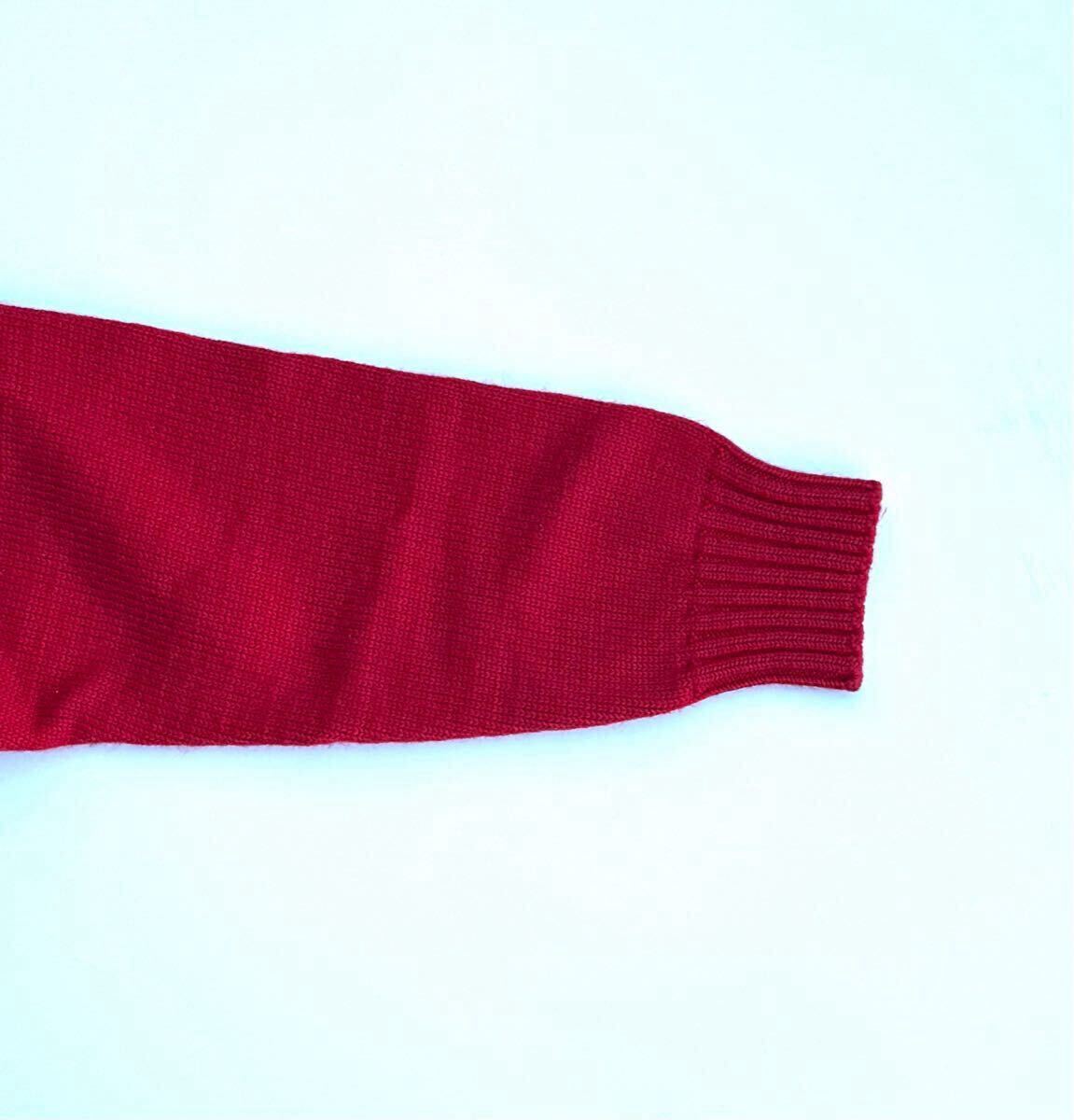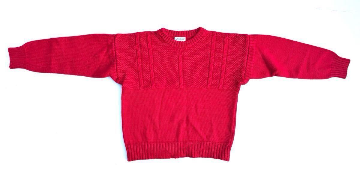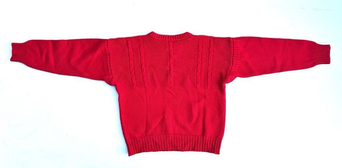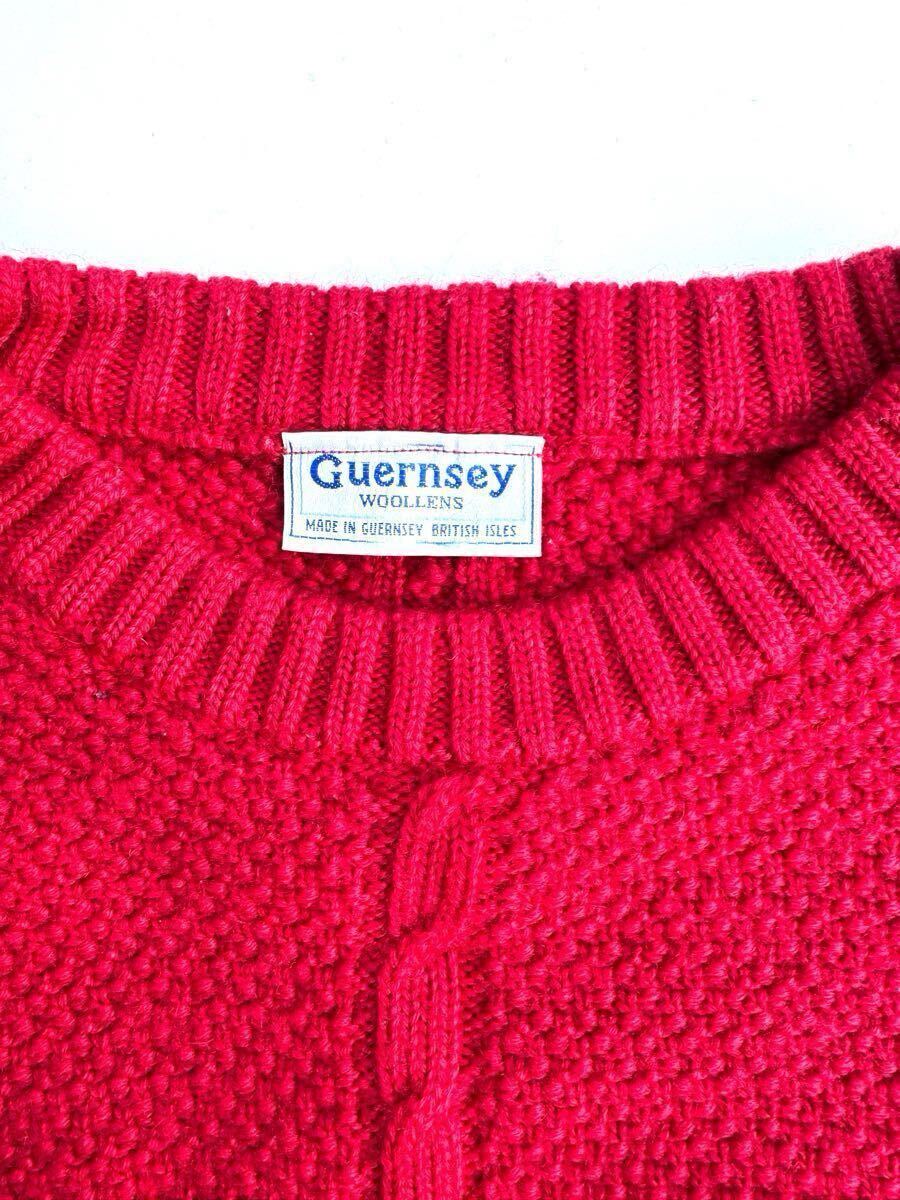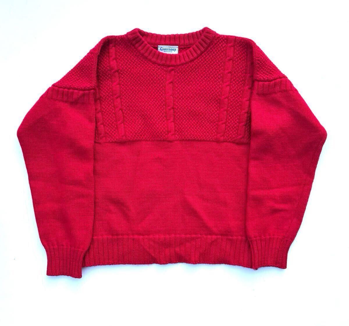 ヴィンテージのガンジーセーターです。ネイビーが多いガンジーセーターですが鮮やかな赤のセーターです。
