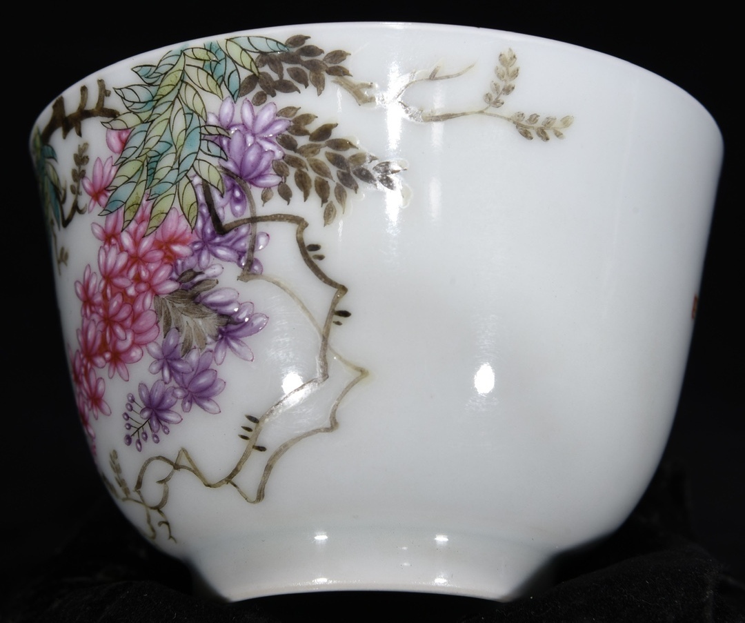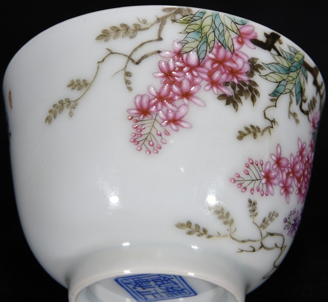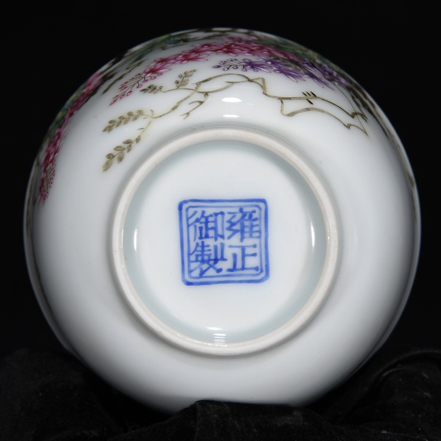 旧蔵 清 雍正御製 エナメル彩 花紋杯 陶芸 古陶磁器 中国磁器 極細工 中国古玩 骨董品 古美味 208
