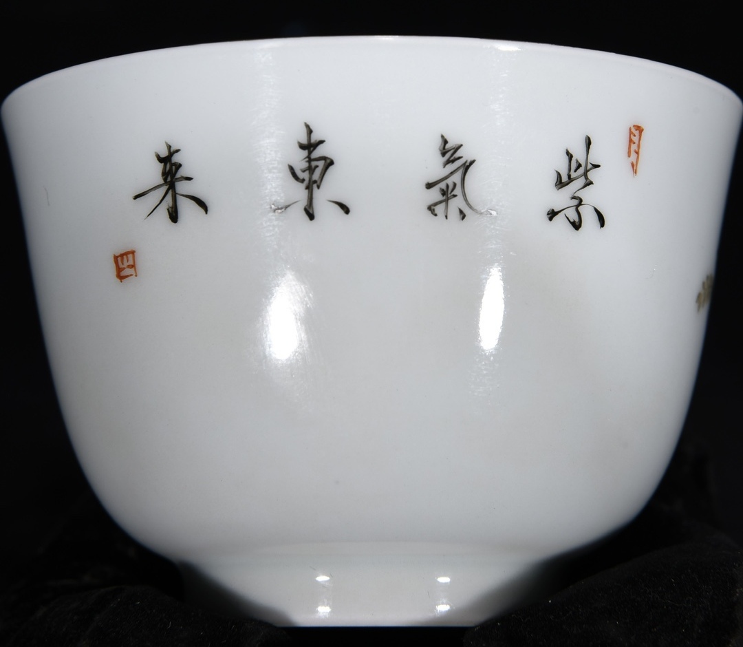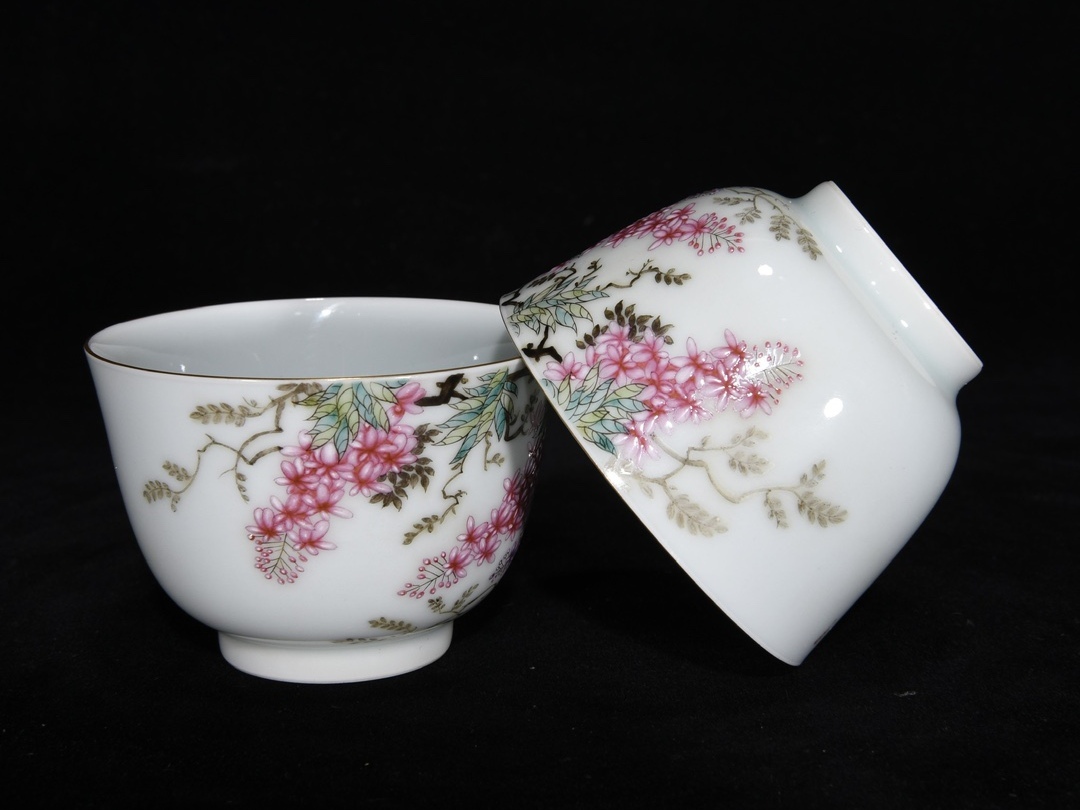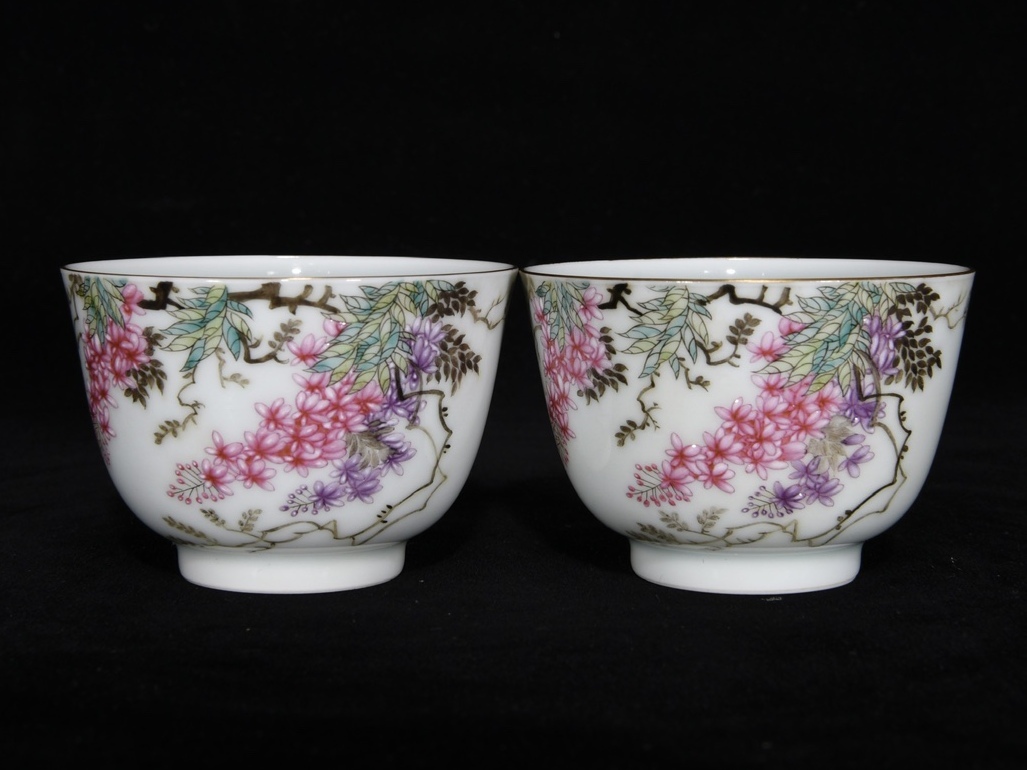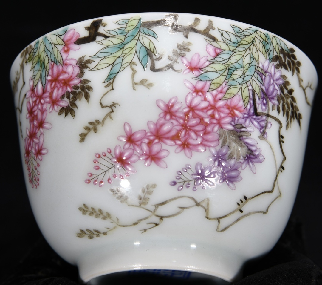 旧蔵 清 雍正御製 エナメル彩 花紋杯 陶芸 古陶磁器 中国磁器 極細工 中国古玩 骨董品 古美味 208
